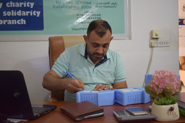 فرع النجف :- يبدا بتجهيز محلات الشاكري الخيريه بالمستلزمات المدرسيه