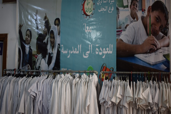 فرع النجف :- يبدا بتجهيز محلات الشاكري الخيريه بالمستلزمات المدرسيه