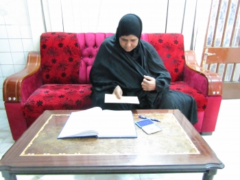 حضرت للسيدة / سليمه عبد الله من اجل استلام المساعدة النقدية والبالغ قدرها (50) الف دينار عراقي ، المقدمة من السيد المتبرع / سايمون ديلي .