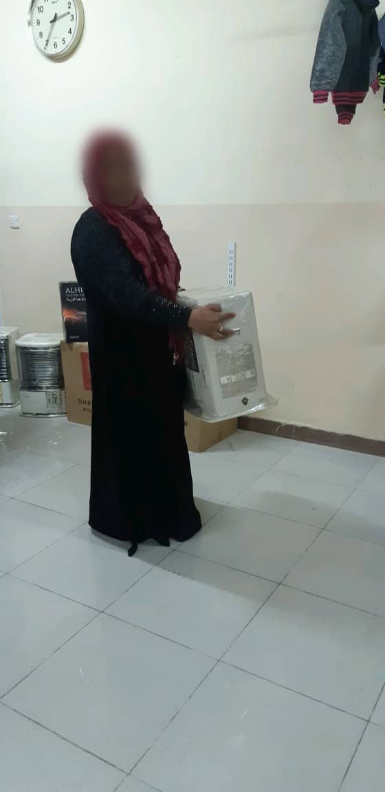 السيد ( علي . د . ج ) يحصل على تبرع بقيمة (50) الف دينار مساعده من المتبرع محمد القزاز رحمه الله لاختيار ما يلزمهم وفق نظام بطاقات الغذاء والاكساء من محلات الشاكري الخيرية حيث تم تجهيزها حسب طلبها بمدفأة كهربائية وبطانيات وقد تم تسليم المساعدة لها بعد ان تم الاتصال عليهم وحضرت الى الفرع