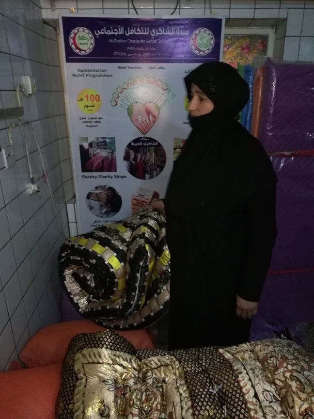 تسليم الكفالة الشهرية للارملة (شيماء ع) بقيمة (50) الف دينار عراقي ,من المتبرع الكريم (عز الدين الكواز) , بعدها قامت الارملة بشراء بعض احتياجاتها من محلات الشاكري الخيرية (مستلزمات مطبخ ) .