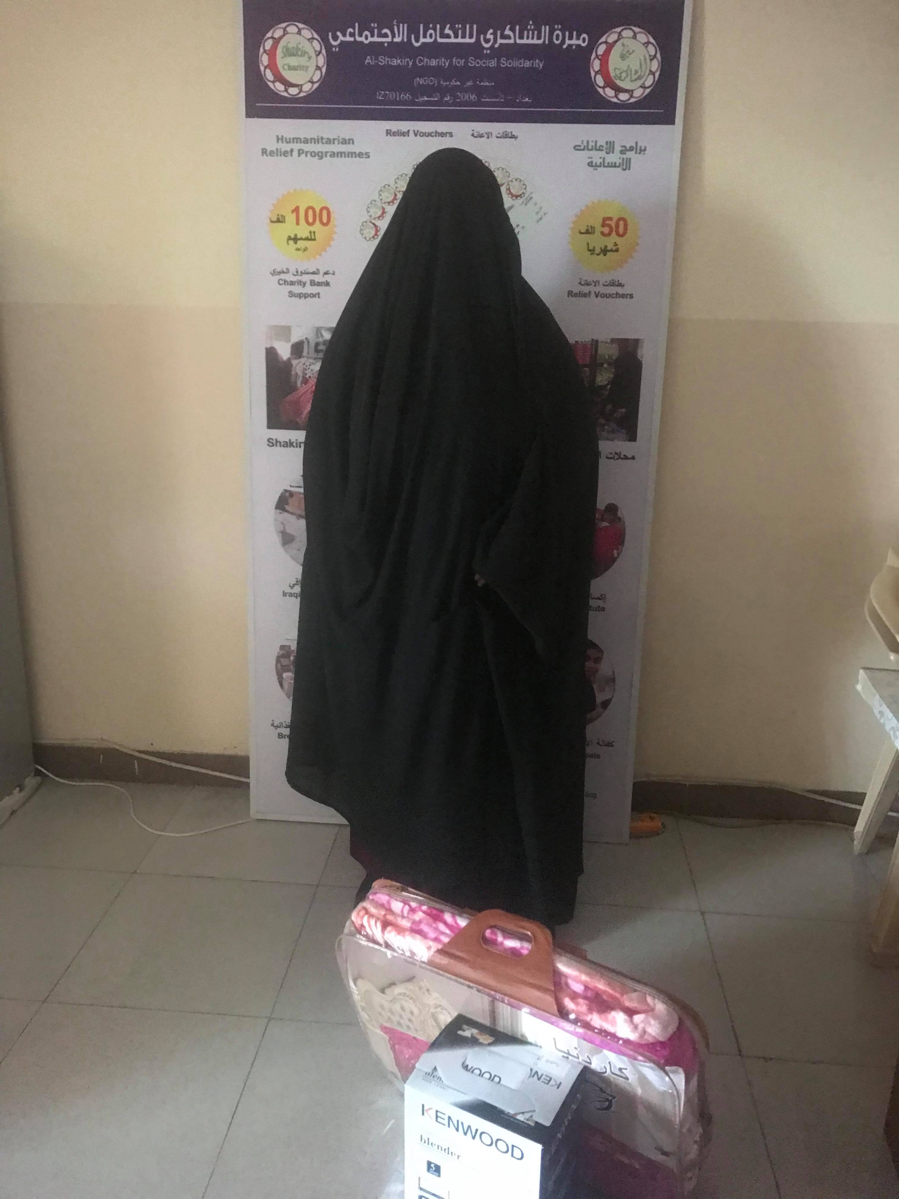 المتعفف (ص . ع . غ ) يحصل على تبرع بقيمة (50) الف دينار مساعده من الساده المتبرعين في لندن لاختيار ما يلزمه وفق نظام بطاقات الغذاء والاكساء من محلات الشاكري الخيرية حيث تم تجهيزه حسب طلبه ببطانية وخلاط كهربائي وقد تم تسليم المساعدة لها بعد ان تم الاتصال عليهم وحضرت زوجتة الى الفرع