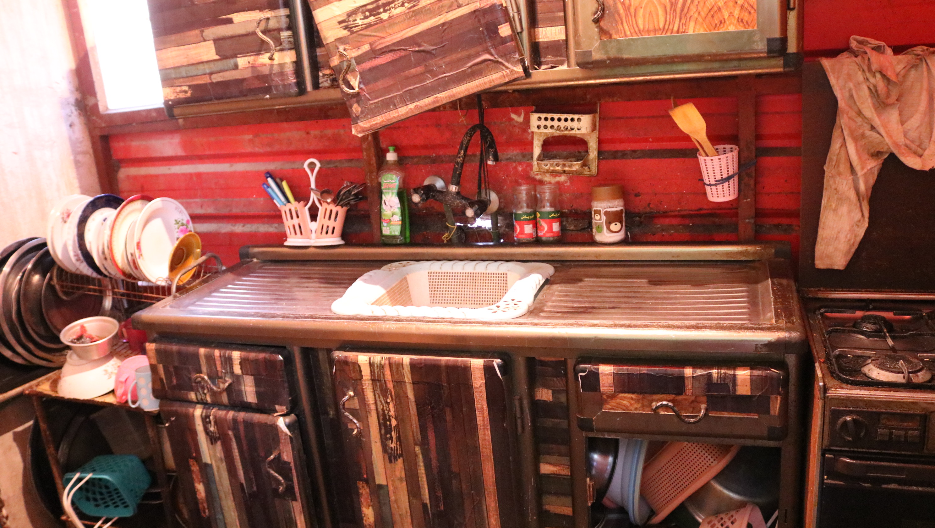 تسكن هذه السيده في منزل ايجار بسيط ينقصه الكثير من المستلزمات الضرورية بمعيشتهم بشكل يكفل لهم الاستمرار في الحياة بكرامة حيث ليس لديهم اي دخل مادي سوى مساعدة المحسنين.