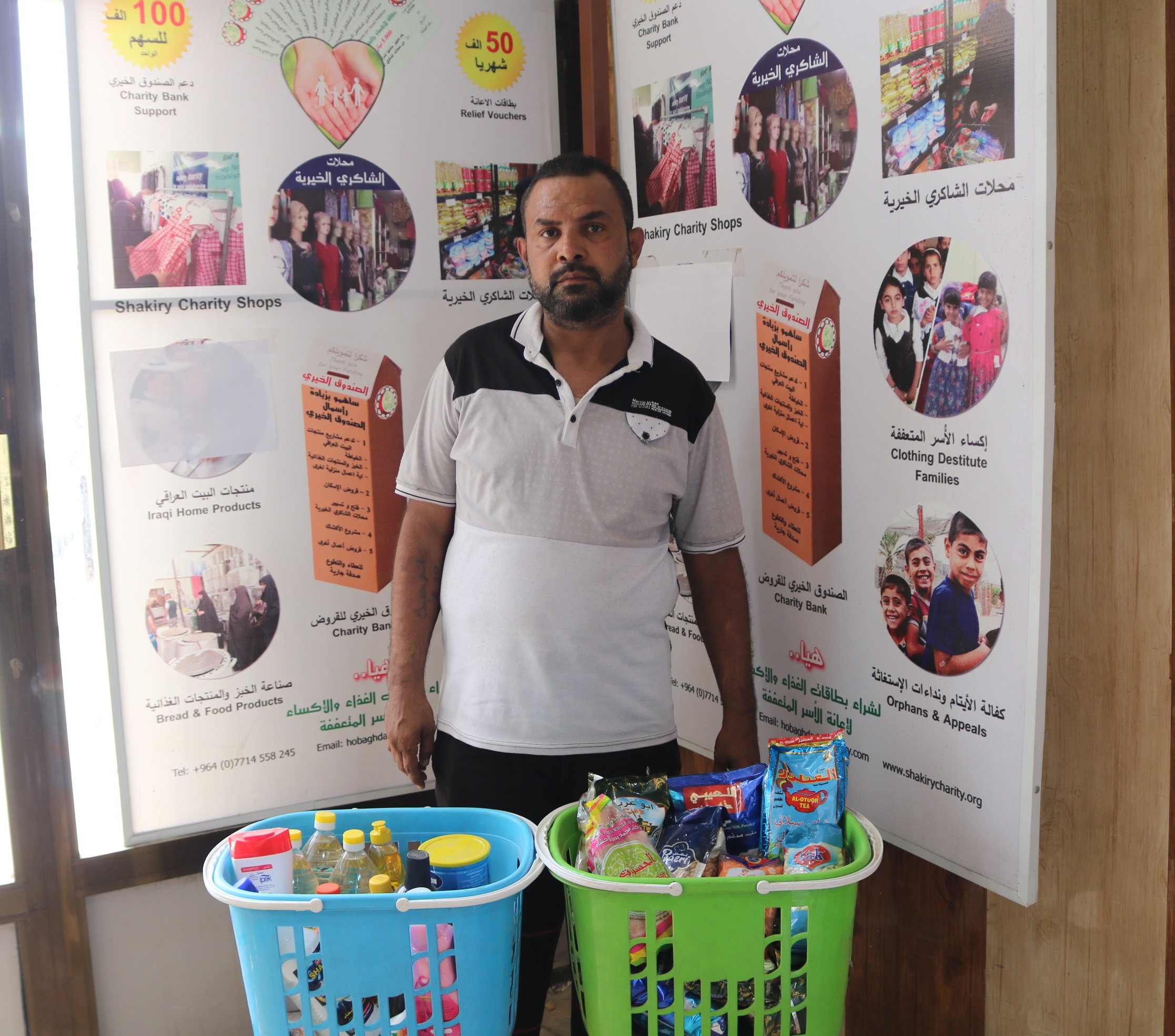 قد ابدت المتعفف حاجته بشراء مواد غذائية من محلات الشاكري الخيرية .