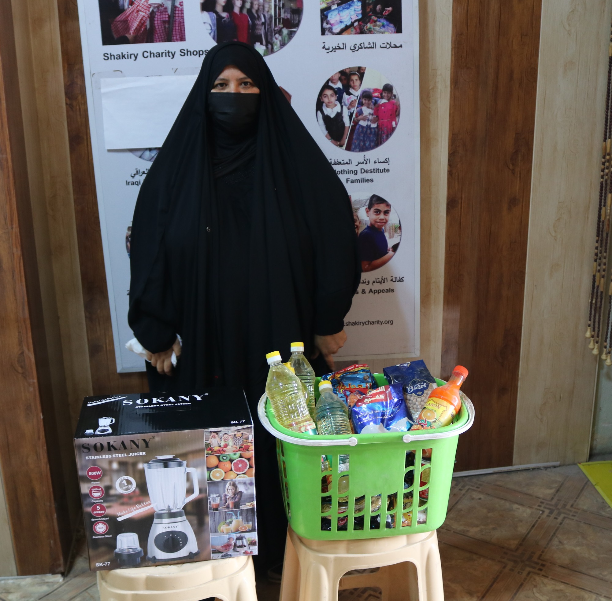 قد ابدت المتعففة حاجتها الى شراء مواد غذائية وخلاط كهربائي من محلات الشاكري الخيرية .