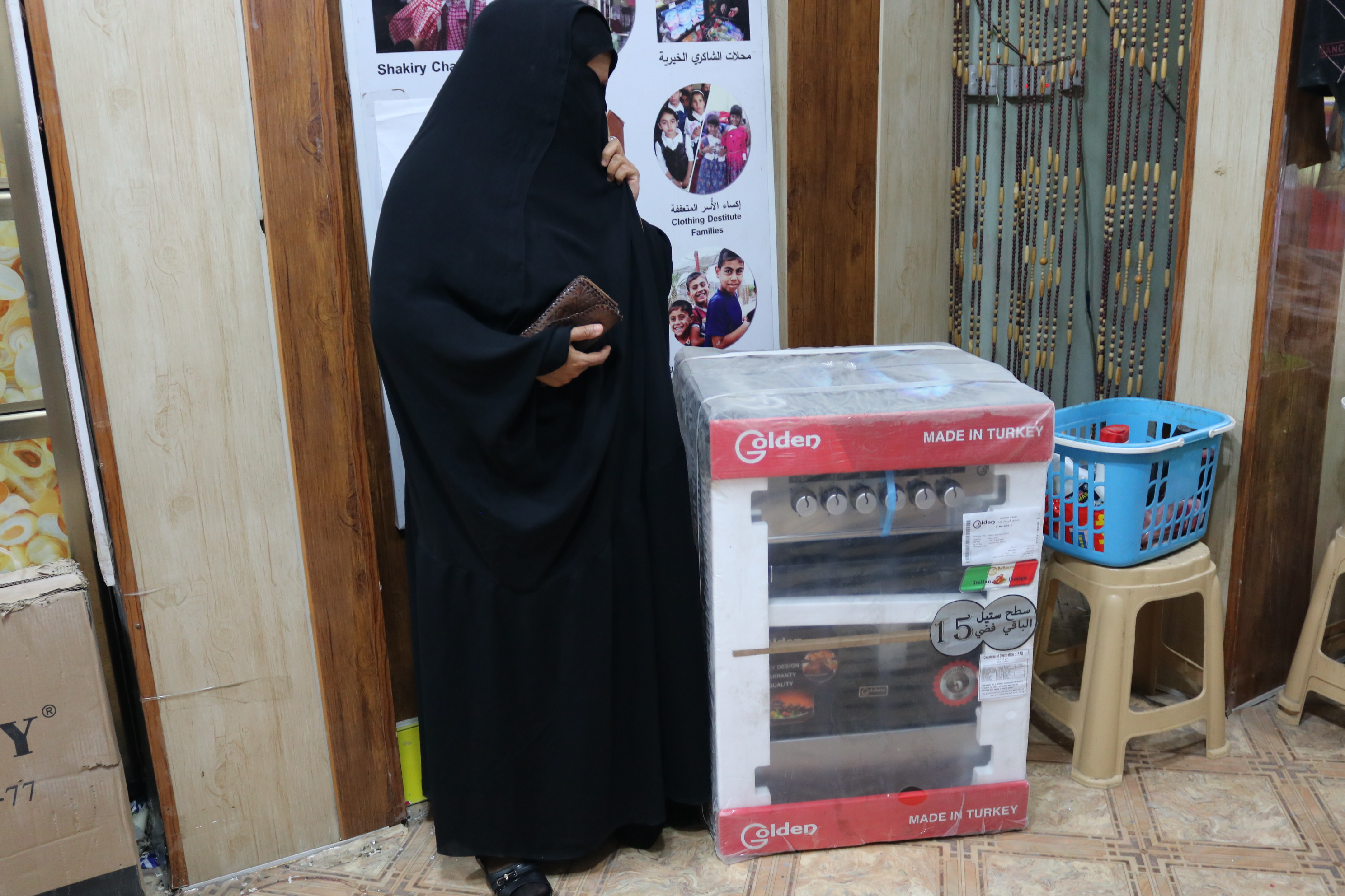 بعد الاستلام ابدت الارملة رغبتها في شراء طباخ تقوم بتسديد قيمتها شهريا من خلال الكفالة الشهرية الى محلات الشاكري الخيرية.