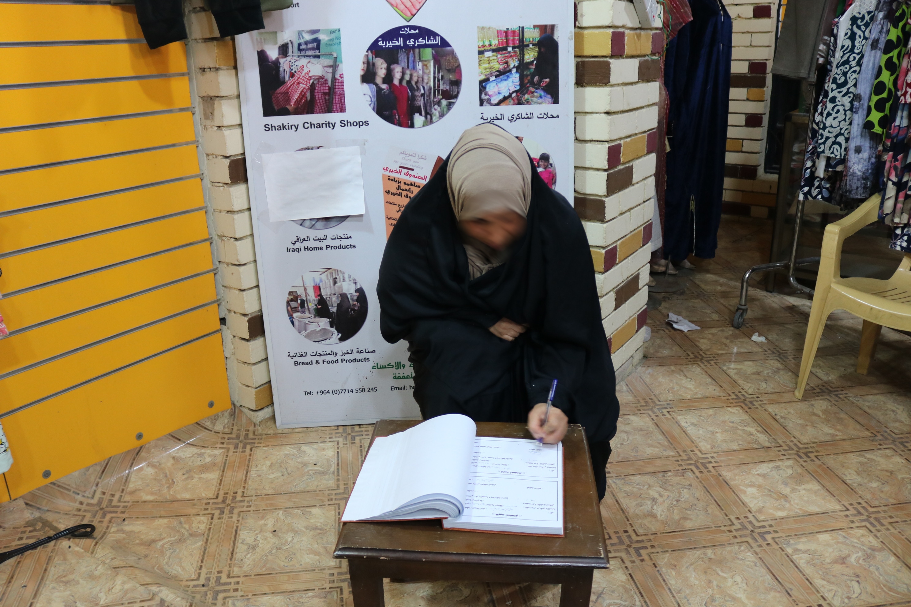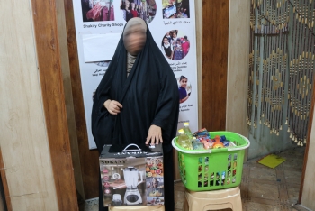 قد ابدت المتعففة حاجتها بشراء مواد غذائية وخلاط كهربائي من محلات الشاكري الخيرية .