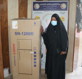 وقد ابدت الارملة رغبتها بشراء ثلاجة تقوم بتسديدها من خلال الكفالة الشهرية الى محلات الشاكري الخيرية.