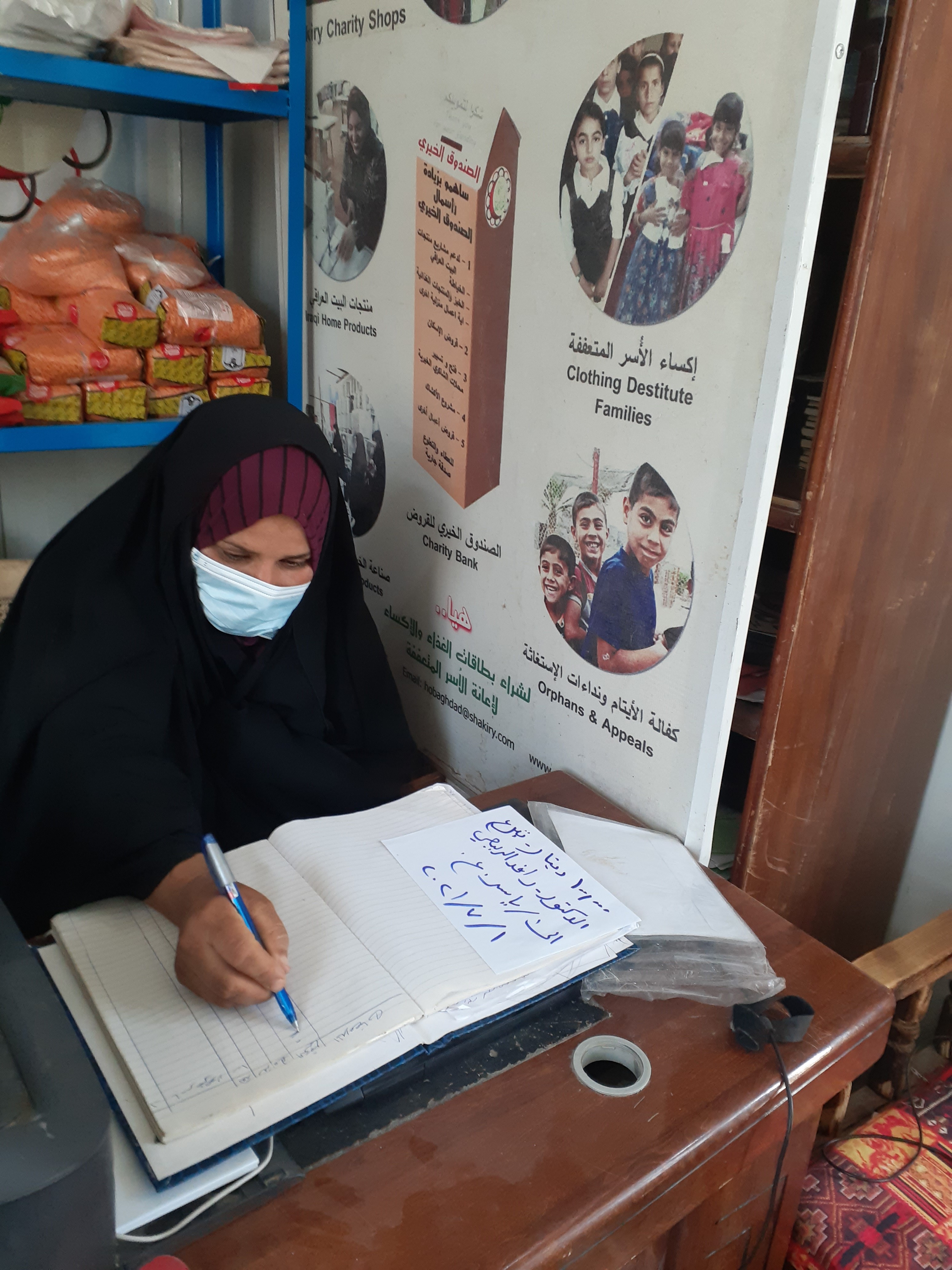 كادر فرعنا مع والدة المستفيدين يتقدمون بالشكر الجزيل الى الاستاذ الفاضل الدكتور رافد الربيعي على عطائه المتميز والمستمر لهذه الاسرة وعلى تبرعه الكريم .