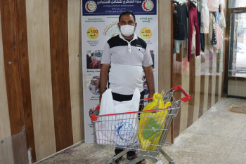 قد ابدا المتعفف حاجته بشراء مواد غذائية من محلات الشاكري الخيرية .