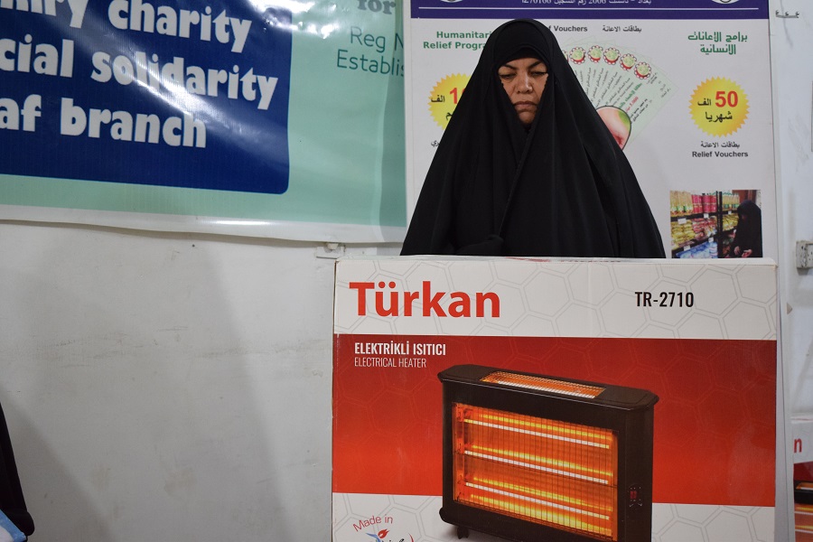 تبرعت السيدة / زينب عبد الزهره لصالح السيده / ازهار . س . ن بمبلغ وقدره (50) الف دينار عراقي عن كفاله لايتامها , وابدت السيده غبتها في شراء (مدفاءه كهربائيه ) وتم توفيرها عن طريق محلات الشاكري ضمن برنامج توفير اهم المستلزمات الضروريه لاسر المتعففه .