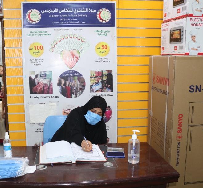 بعد الاستلام ابدت الارملة رغبتها بشراء مواد غذائية وتم تجهيزها من قبل محلات الشاكري الخيرية .
