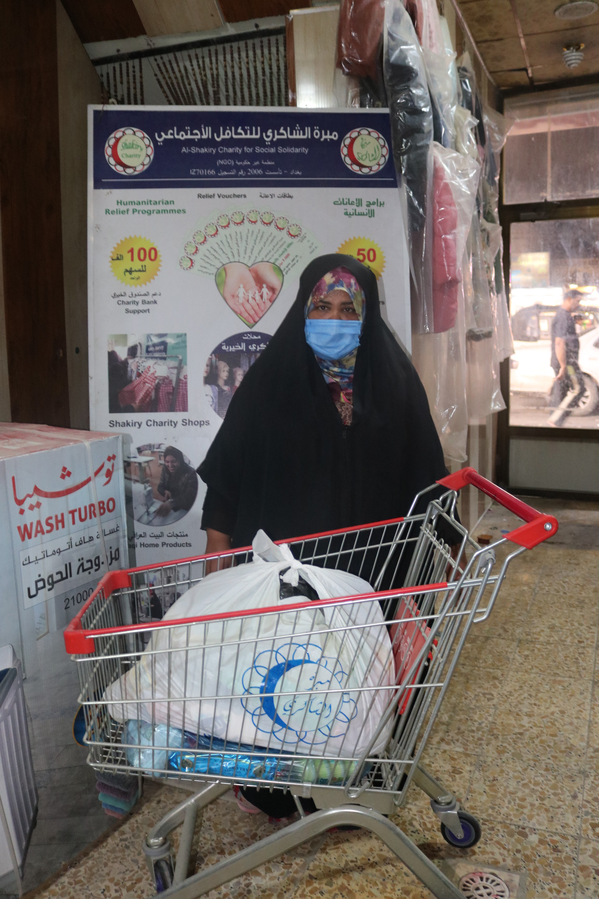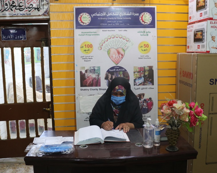 بعد الاستلام ابدت المتعففه رغبتها بشراء مواد غذائية وتم تجهيزها من قبل محلات الشاكري الخيرية .