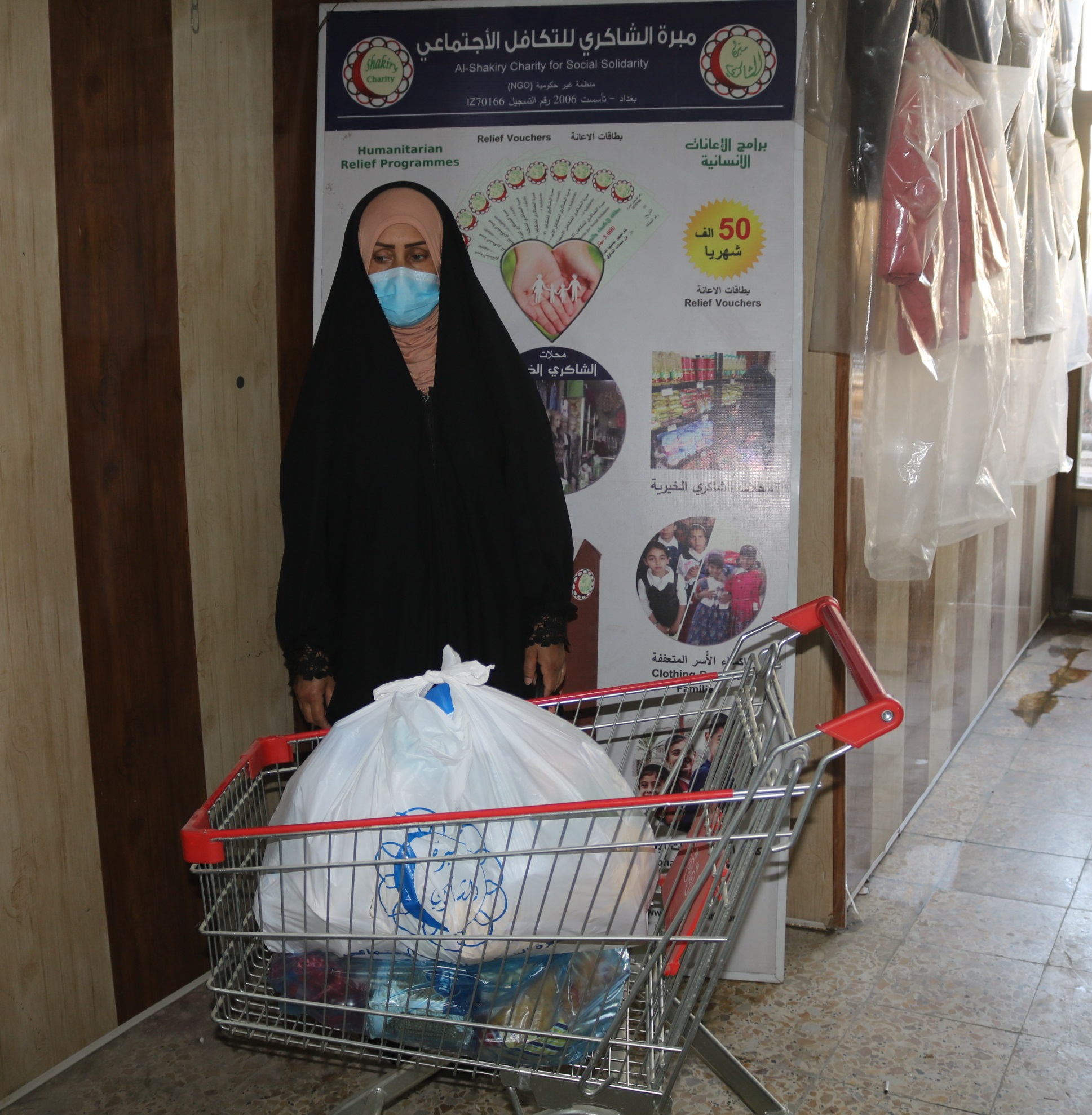 بعد الاستلام ابدت المتعففه بشراء مواد غذائية وتم تجهيزها من محلات الشاكري الخيرية .