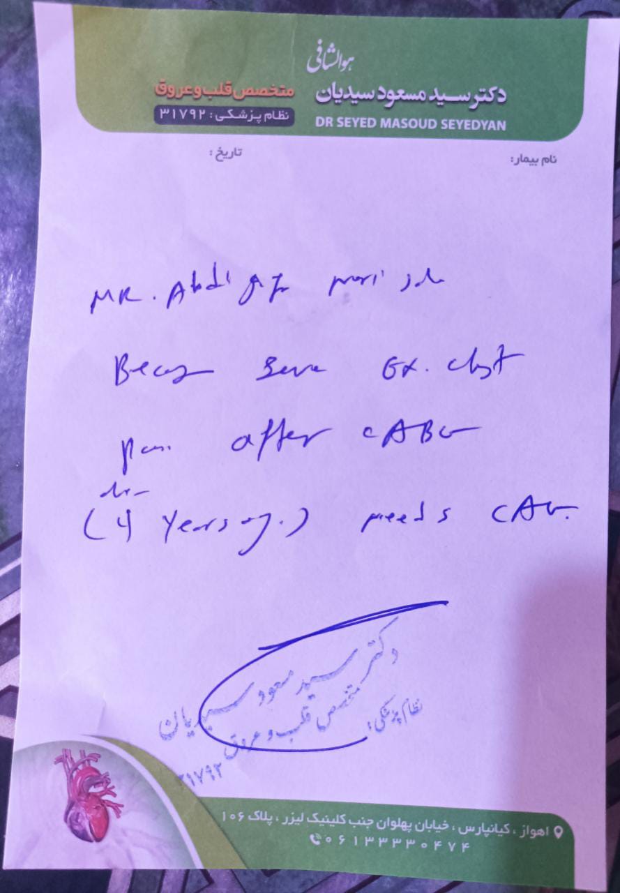 تبرع كريم من الحاج /كامل الشريفي لصالح المستفيد (عبد غ ن )