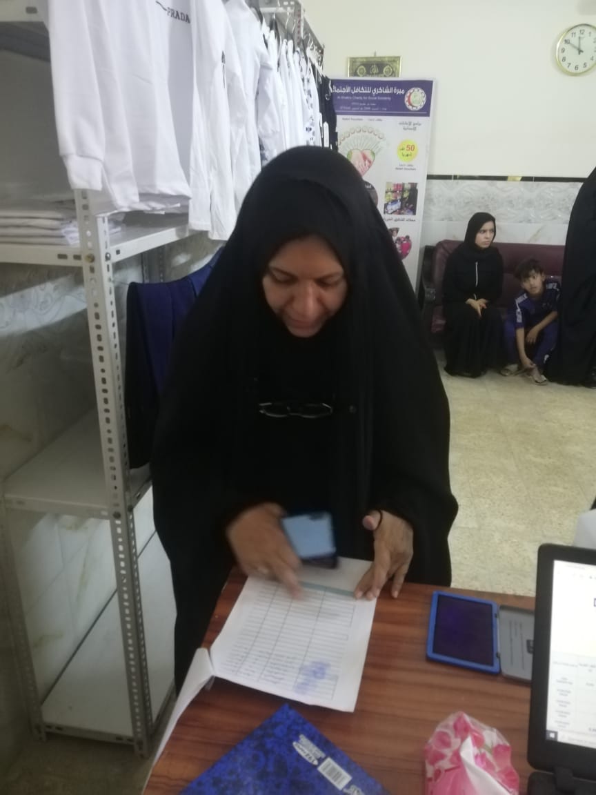 مساعدة مالية من المتبرع / ليث كبه البالغ قيمتها (50) الف دينار عراقي للارملة (نجلاء ,ك ) والمخصصة لتوفير أهم احتياجات هذه الام , وحسب رغبتها تم توفير احتياجاتها الضروريه ( سلة غذائية ومنتوجات البيت العراقي ) وذلك عبر محلات الشاكري الخيرية, وقد تم تسليمها اليها وفق نظام بطاقات الغذاء والأكساء المدعوم من الصندوق الخيري حسب برنامج توفير المستلزمات الضروريه للاسر المتعففه .