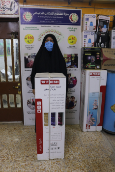 بعد الاستلام ابدت الارملة رغبتها بشراء ( براد ماء ) وتم تجهيزها من محلات الشاكري الخيرية ويتم التسديد من خلال كفالة الايتام الشهرية .
