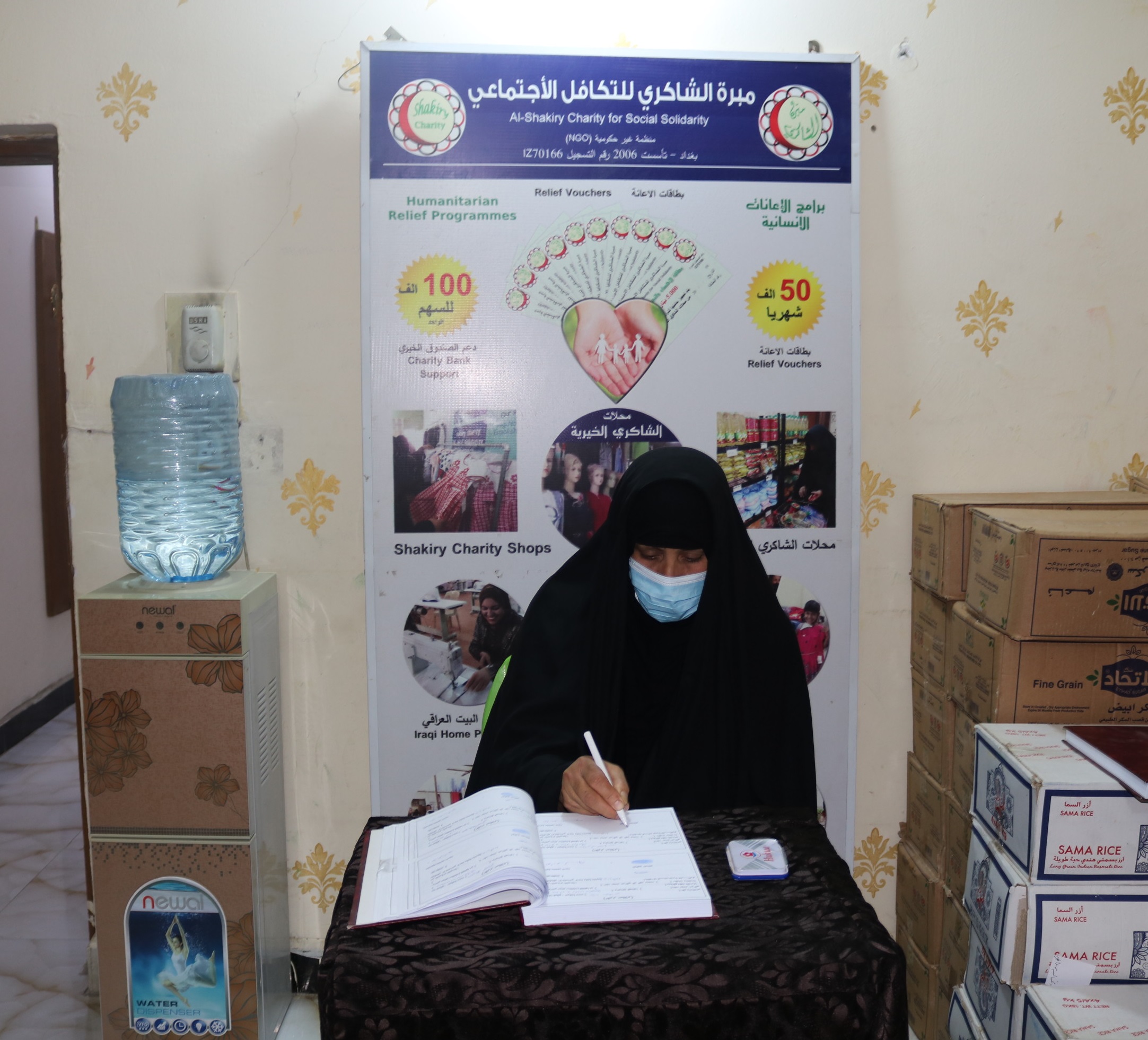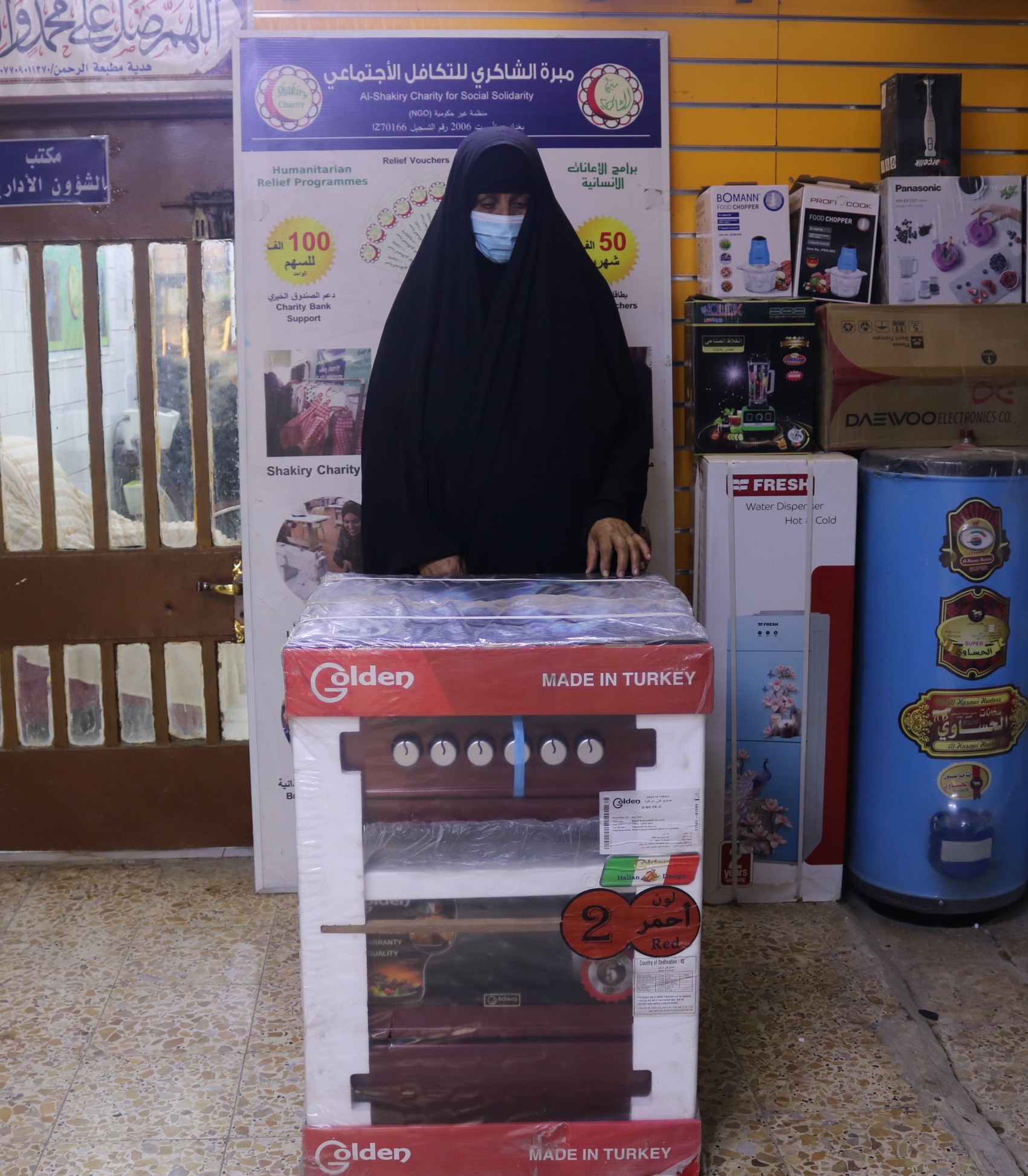 بعد الاستلام ابدت الارملة رغبتها بالحصول على / طباخ ومواد غذائية حيث تم تجهيزها من محلات الشاكري الخيرية ويتم تسديدها من خلال الكفالة الشهرية .
