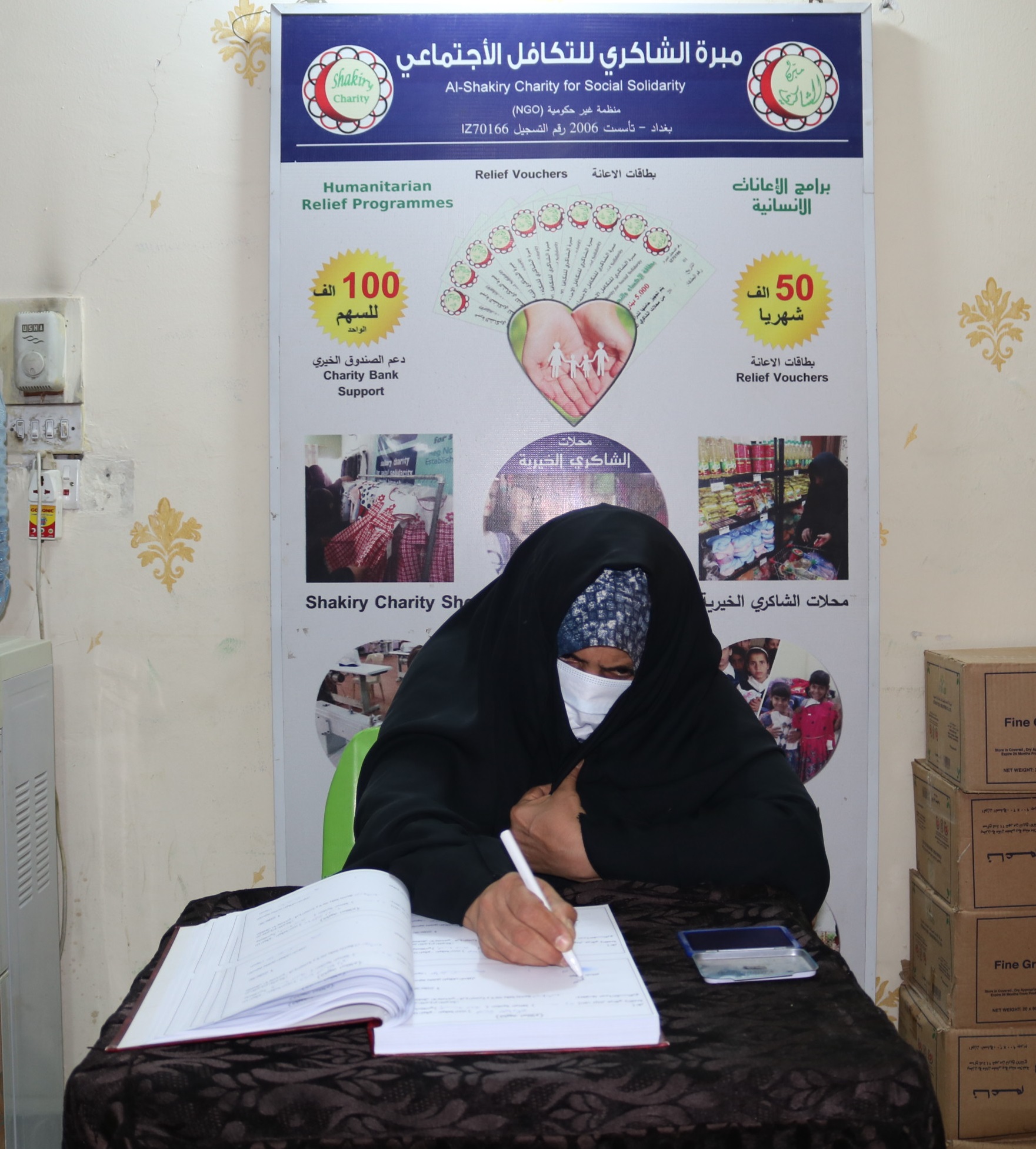 بعد الاستلام ابدت المتعففه رغبتها بالحصول على / مواد غذائية حيث تم تجهيزها من محلات الشاكري الخيرية .