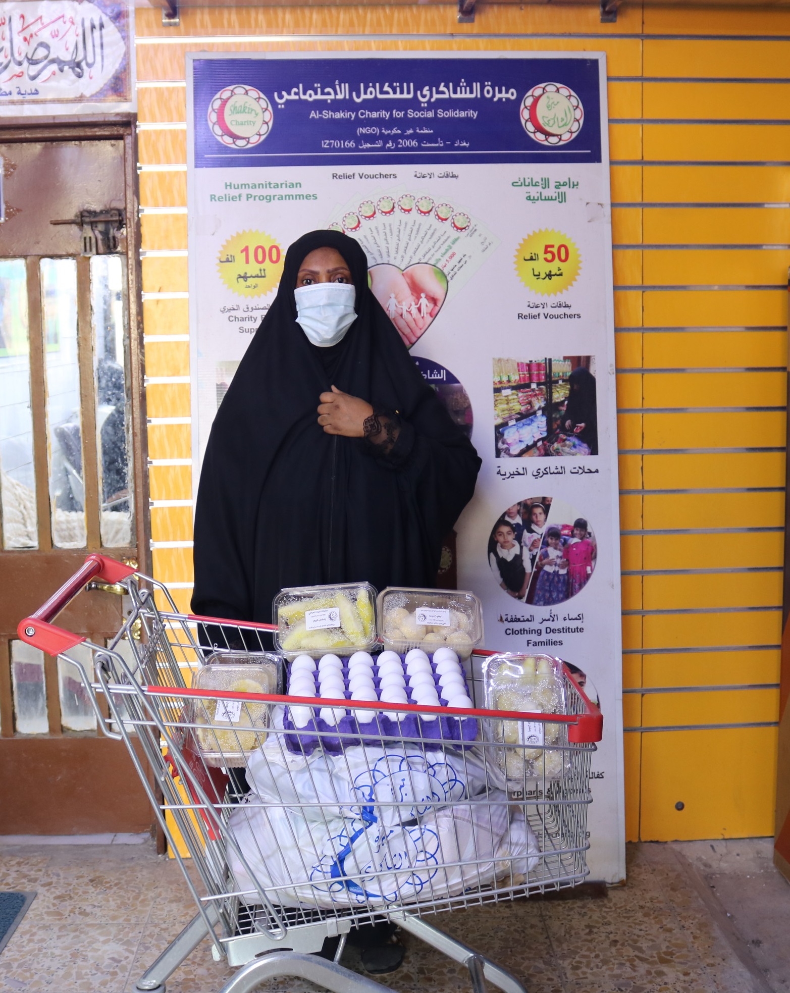 بعد الاستلام ابدت المتعففه رغبتها بالحصول على/ مواد غذائية حيث تم تجهيزها من محلات الشاكري الخيرية