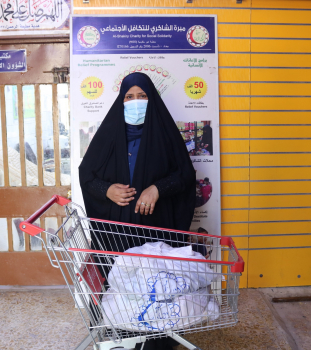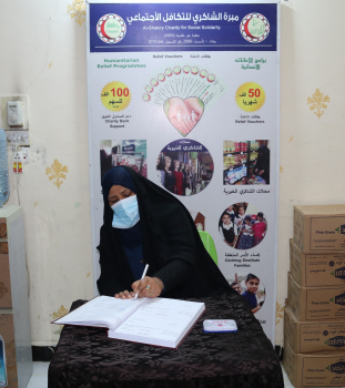 بعد الاستلام ابدت المتعففه رغبتها بالحصول على / مواد غذائية حيث تم تجهيزها من محلات الشاكري الخيرية .