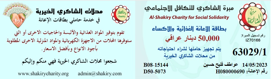 مبرة الشاكري للتكافل الاجتماعي / فرع البصرة