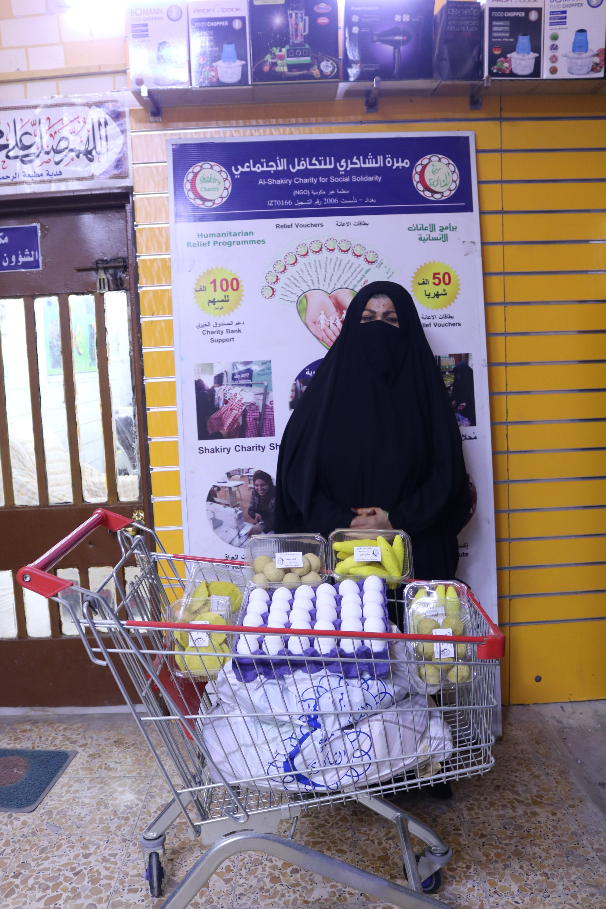 بعد الاستلام ابدت المتعففه رفبتها بالحصول على / مواد غذائية حيث تم تجهيزها من محلات الشاكري الخيرية .