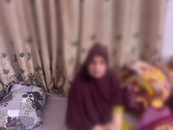 في غرفة من بيت اخيها ,هذه المتعففة تعاني من الاعاقة الولادية ( سوفان الركبة مع انزلاق غضروفي في الفقرة القطينة ادى الى تضيق القناة الشوكية ) ونسبة العجز 70% اضاة الى اختها المريضة بـ ( التخلف العقلي) ونسبة العجز80% ,