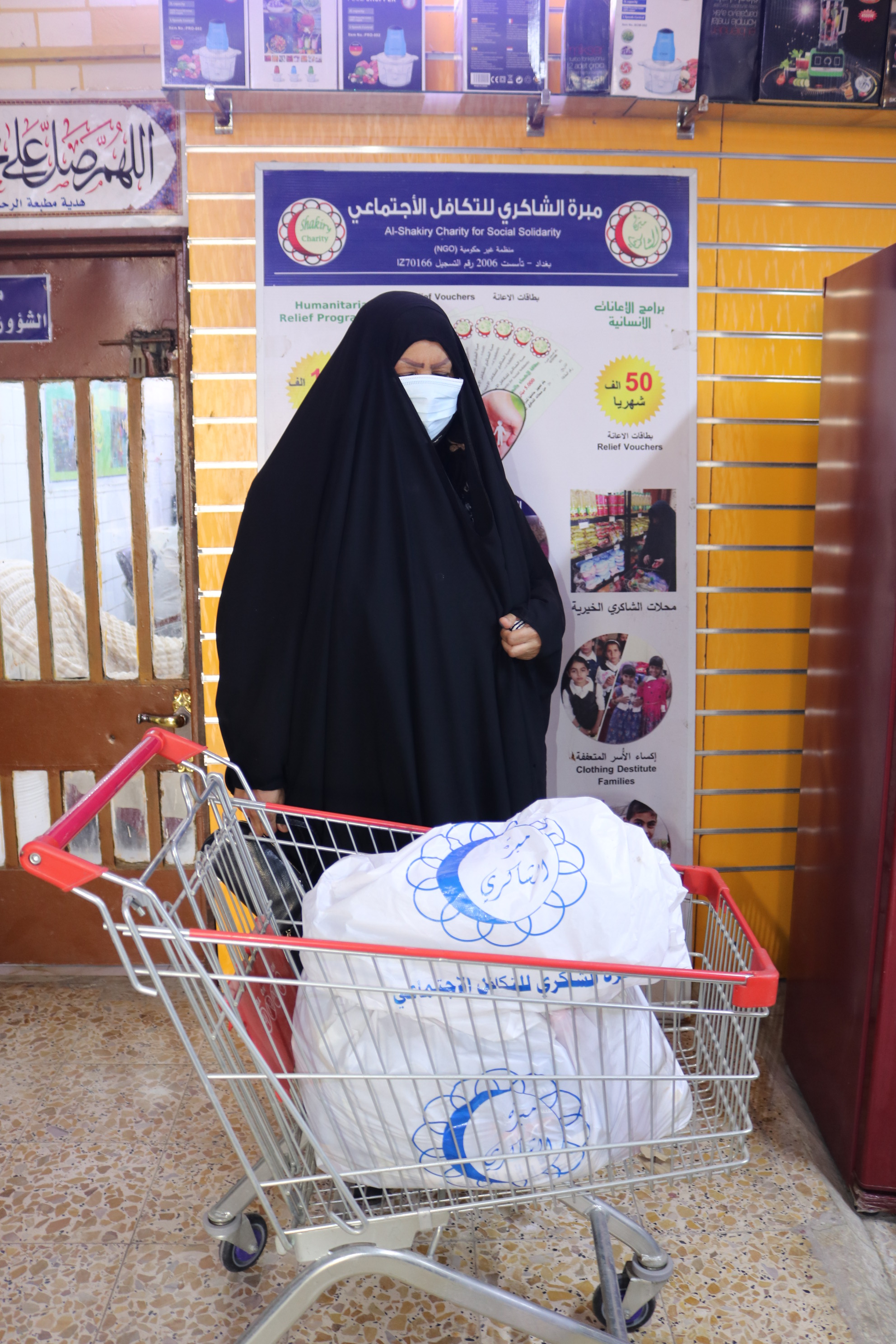 بعد الاستلام ابدت السيدة رغبتها بالحصول على / مواد غذائية حيث تم تجهيزها من محلات الشاكري الخيرية