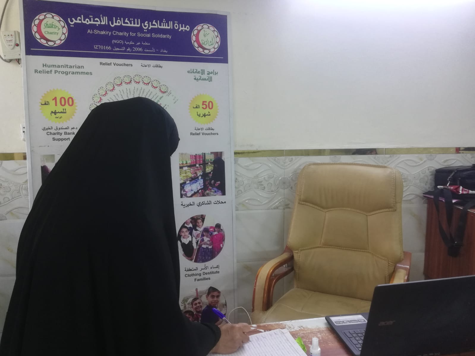 تم تسليم الكفاله الشهريه للارمله ( انتصار . ع ) من المتبرع / محمد نعمه , بقيمه (25) الف دينار عراقي , وبعدها ابدت رغبتها بشراء بعض احتياجاتها الضروريه (سلات غذائية ) وذلك لحاجتها الماسه اليها وفق نظام بطاقات الغذاء والاكساء عبر محلات الشاكري الخيريه المرتبطه بالفرع .