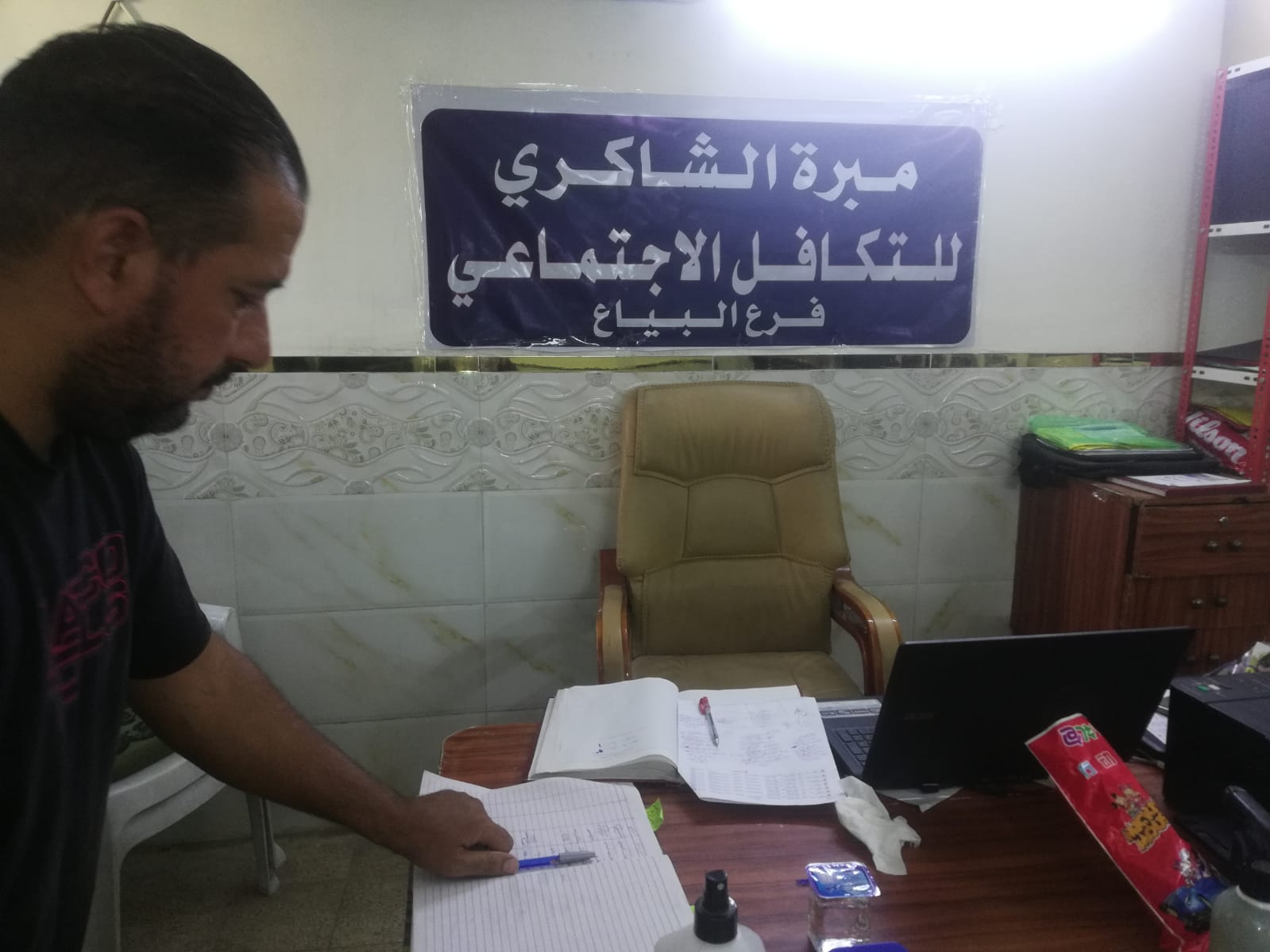 تسليم المساعدة المالية المقدمة من السيد ( عبد الصاحب الشاكري) لاسرة المتعفف (محمد ح) ,بعدها تم الاتصال بالاسرة لحضورهم وتسليمهم التبرع عن طريق محلات الشاكري الخيرية ( ملابس مدرسية )