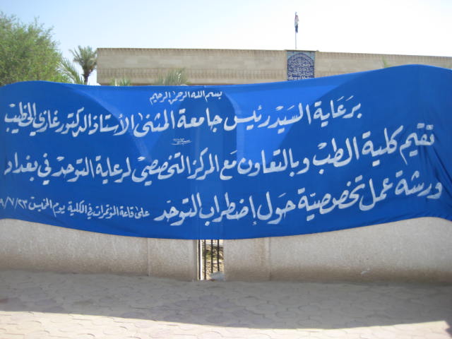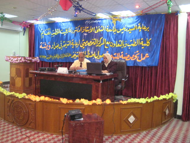 1 – ( 23 – 7 – 2009 ) برعاية رئيس جامعة المثنى الاستاذ الدكتور غازي الخطيب اقامت كلية الطب وبرعاية المركز التخصصي لرعاية التوحد وجمعية الرامي لرعاية العوق الذهني ورشة عمل تخصصية حول التوحد وقد اقيم المؤتمر على قاعة المؤتمرات في كلية الطب بحضور مجموعة كبيرة من الاطباء والاساتذة في الكليات التابعة لجامعة المثنى حيث ناقش المؤتمرون اضطراب التوحد من حيث التشخيص و التاهيل والسبل الكفيلة لاعادة تأهيل اطفال التوحد ومساعدة ذويهم ونتيجة لتزايد الاعداد المصابة بهذا الاضطراب في مدينة السماوة ارتئ اساتذة كلية الطب باقامة مشروع يخدم هذه الشريحة وعوائلهم حيث لمسنا ترحيب واهتمام كبيرين من قبل رئيس جامعة المثنى وعميد كلية الطب الدكتور مساعد حكمت الدهان والدكتور احسان عبد الفتاح روستم وفريق اعمار المثنى الذي يرأسه السيد علي عبد الحسين النجار كما حضر المؤتمر العديد من القنوات الاعلامية واعضاء جمعية الرامي ومندوب رابطة المبرات العراقية في السماوة والجمعيات التي ترعى شؤون المعاقين في محافظة السماوة وقد شرحت السيدة نبراس سعدون مديرة المركز التخصصي لرعاية التوحد في محاضرتها الاولى موضوع تشخيص التوحد في العراق واهم معوقاته وماهي الطرق التشخيصية الصحيحة المتبعه عالميا ونوهت عن تجربة التوحد في العراق من خلال خبرة لاتقل عن العشرة سنوات للعمل مع المتوحدين كما شرحت اهم البرامج وطرق التدريب الصحيحة المتبعة عالميا تلاها محاضرة الدكتورة اسراء عبد المنعم هادي والدة احد الاطفال المتوحدين وتجربتها الناجحة في تأهيل وعلاج ابنها واختتم المؤتمر بتوصيات اهمها