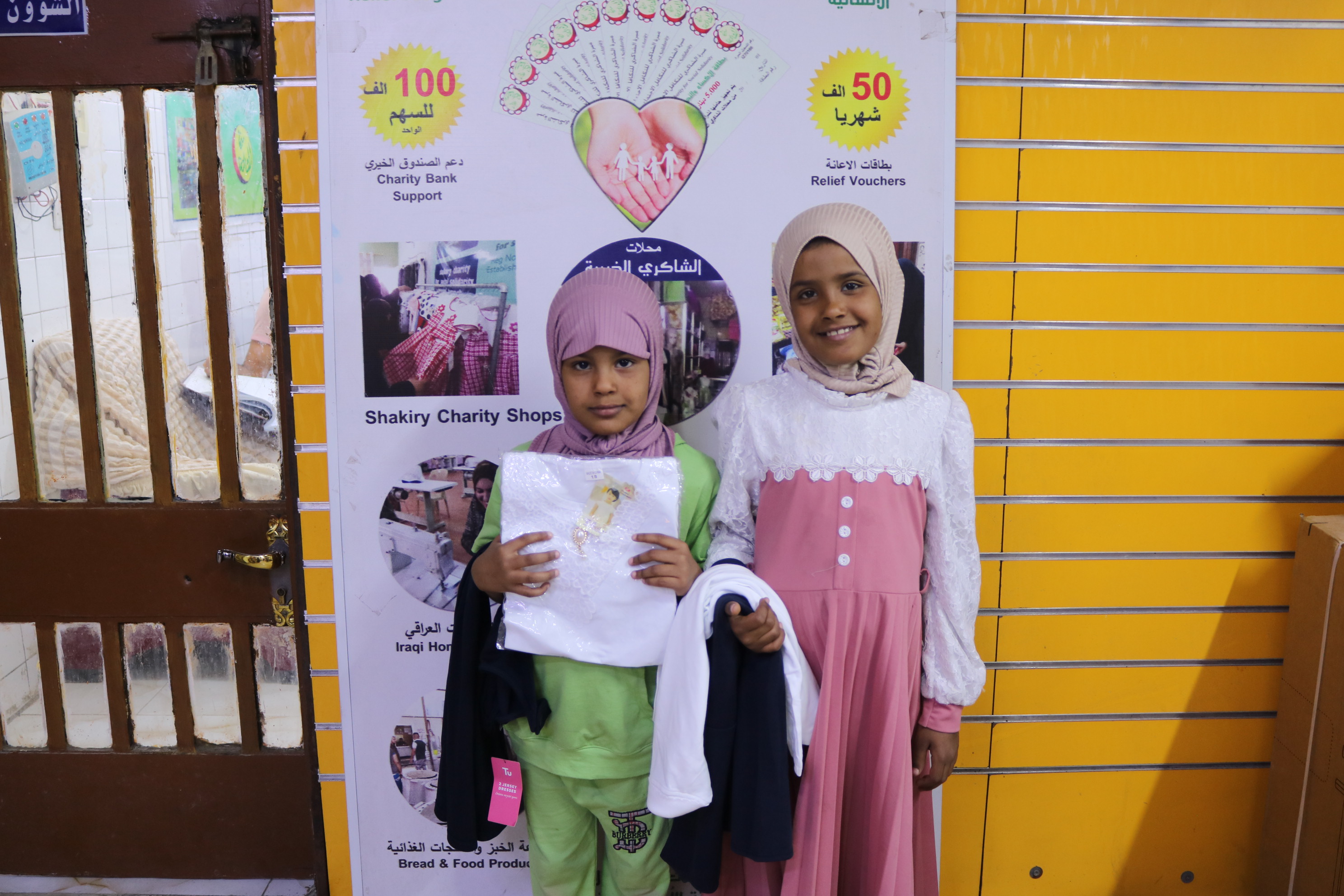 بعد الاستلام ارغبت الارملة بأختيار ما يناسبهم من /الملابس المدرسية محلات الشاكري الخيرية .