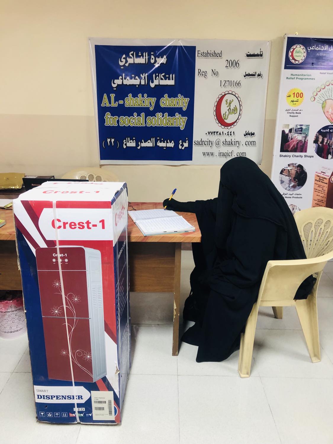 تم تسليم التبرع المقدم من الاستاذ /عبد الصاحب الشاكري والبالغ قيمته (50) الف دينار عراقي الى الارملة (نجلاء ، ج ،ك) حيث تم تسديد القسط الثالث من قيمة براد الماء الذي جهزت به العائلة من محلات الشاكري الخيرية.