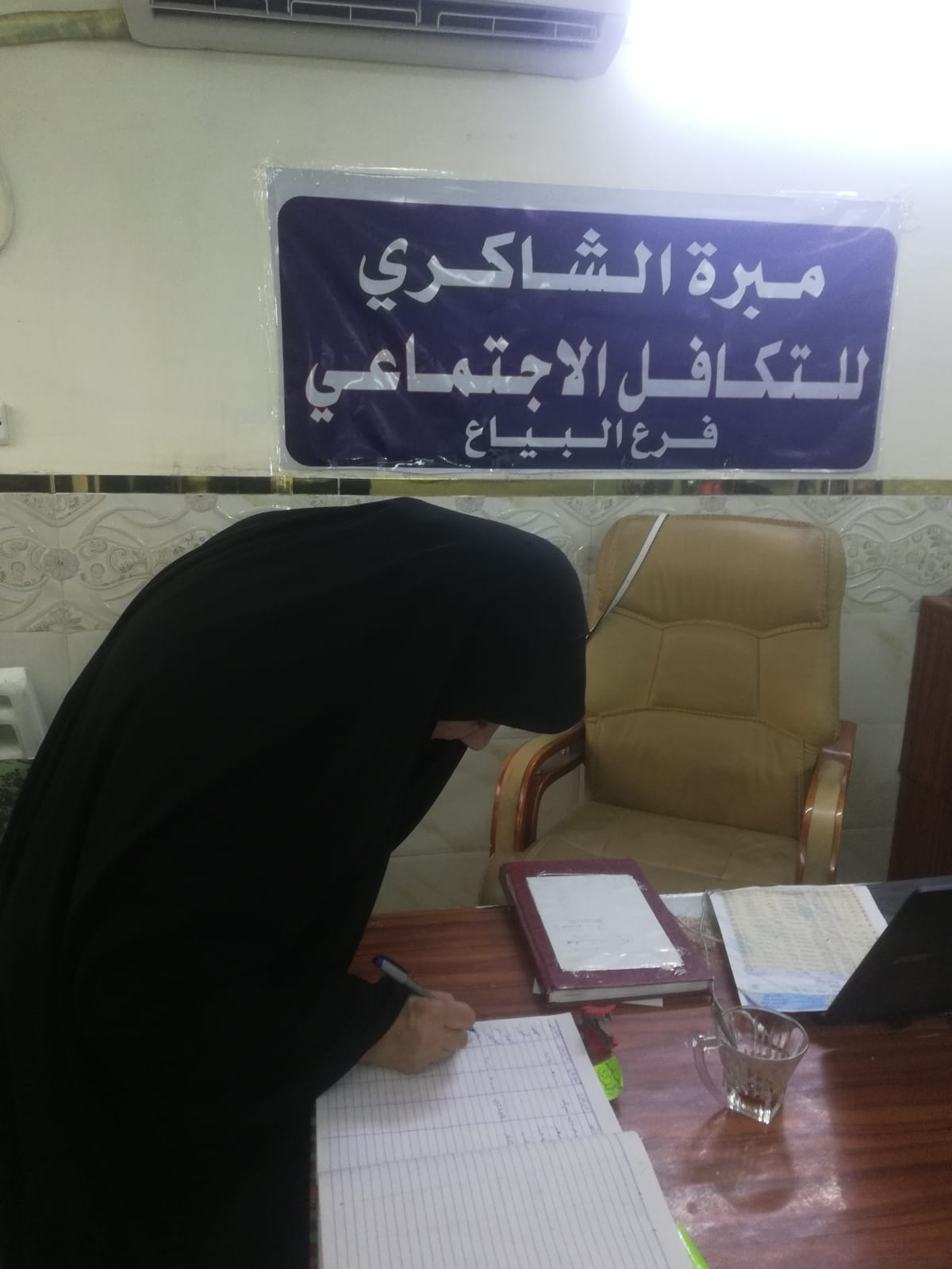 تسليم الماعدة المالية المقدمة من الاستاذ (ك,ش) بقيمة (50) الف دينار عراقي بعدها ابدت المتعففة رغبتها بالحصول على احتياجاتها من محلات الشاكري الخيرية( مواد غذائية ) وتم تلبية طلبها .
