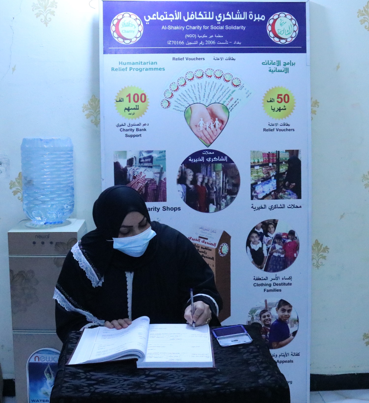 تسليم السيدة المتعففه ( رغده . ف . ع ) بطاقة الغذاء والاكساء والمستلزمات الاخرى البالغ قيمتها (50) الف.د.ع والمقدمة من قبل الحاج / عبدالصاحب الشاكري لاعانة الاسرة في احتياجاتهم الضرورية .