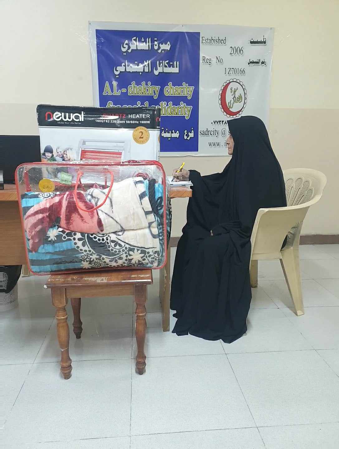 . تم تسليم التبرع المقدم من الاستاذ/عبدالصاحب الشاكري للمتعففة ( مهدية. غ . غ) والذي يبلغ (50) الف دينارعراقي , وعند حضورها رغبت بالحصول على اغطية شتوية ومدفئة كهربائية من محبلات الشاكري الخيرية.