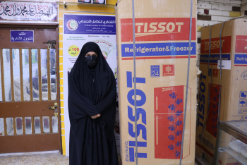 بعد الاستلام ارغبت الارملة بأختيار ما يلزمها من / ثلاجة حيث تم تجهيزها من محلات الشاكري الخيرية .