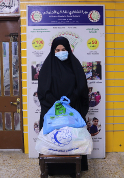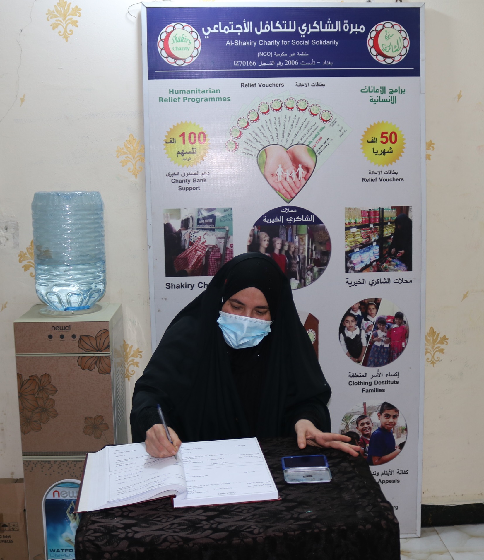 تسليم الارملة ( شيرين . ن . خ ) بطاقة الغذاء والاكساء والمستلزمات الاخرى البالغ قيمتها (50) الف.د.ع المقدمة من قبل المتبرع الفاضل / انمار . لاعانة الاسرة في احتياجاتهم الضرورية .