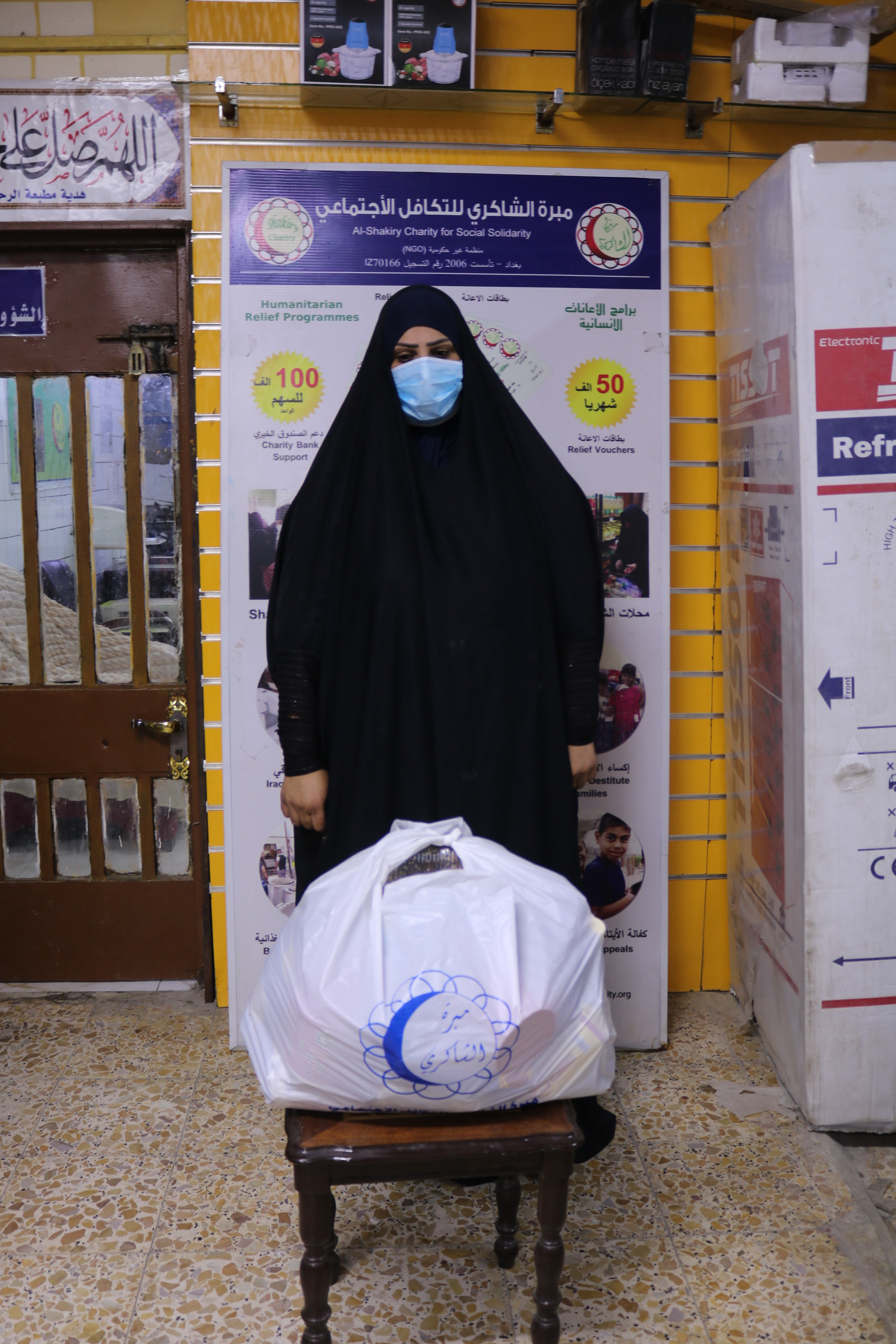 بعد تسليم ارغبت المتعففه بأختيار ما يلزمها من/ المواد الغذائية حيت تم تجهيزها من محلات الشاكري.
