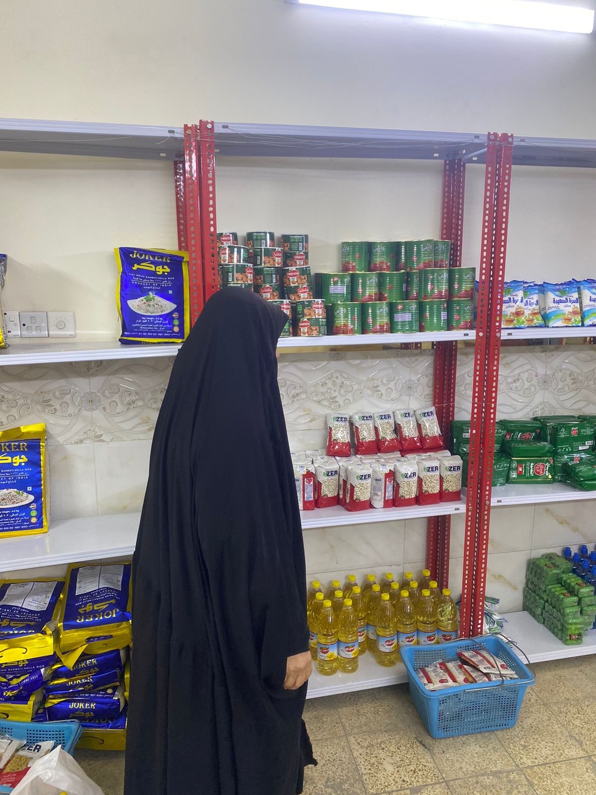 تم تسليم المستفيده السلة الغذائية بناء على طلبها ووفق اختيارها من محلات الشاكري الخيرية .