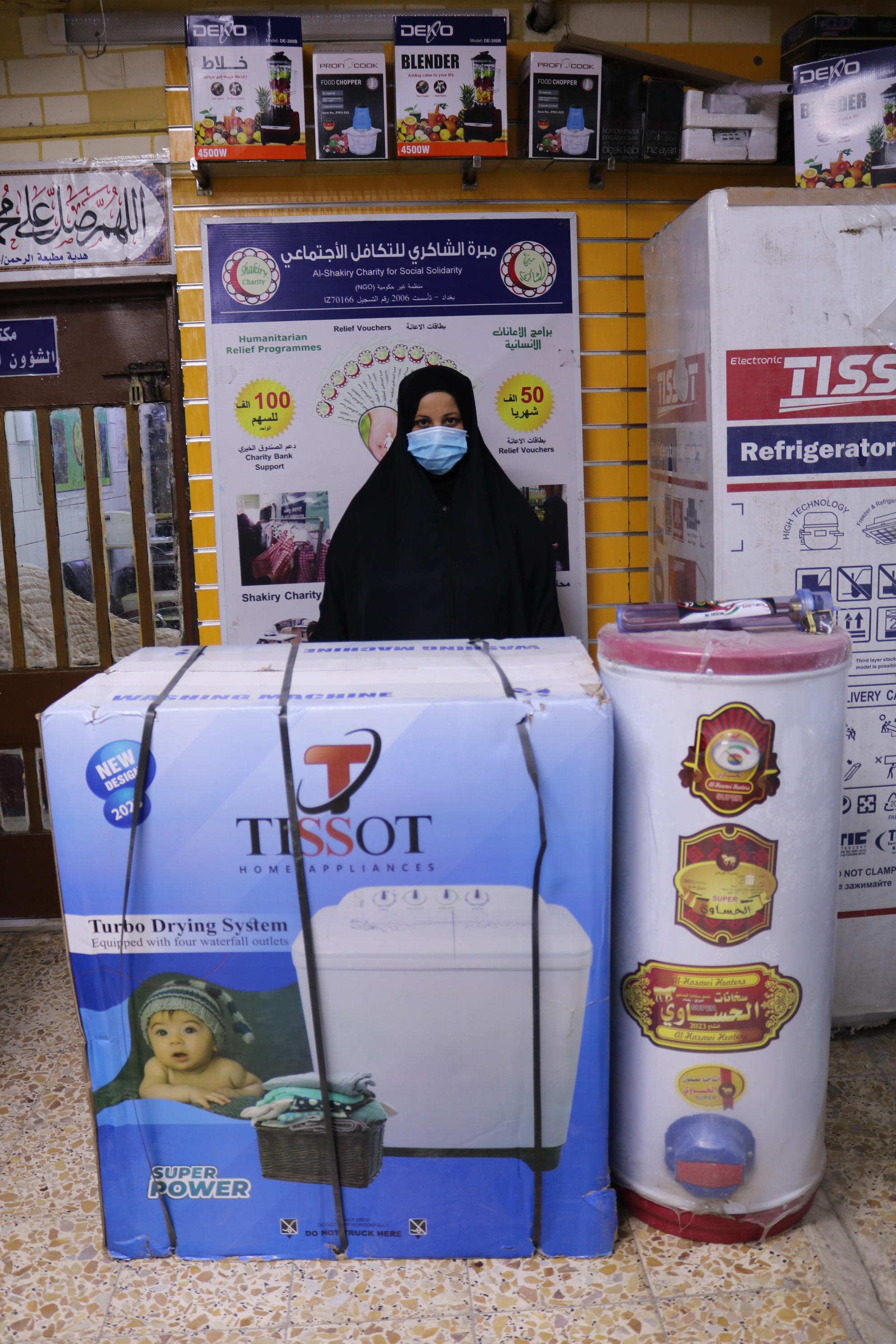 تسليم كفالة الاسرة الشهرية الى السيدة المتعففه ( مياده . ح ) البالغ قيمتها (50) الف.د.ع المقدمة من قبل المتبرع الفاضل/احسان عدنان هندي لاعانة الاسرة في احتياجاتها اللازمة .