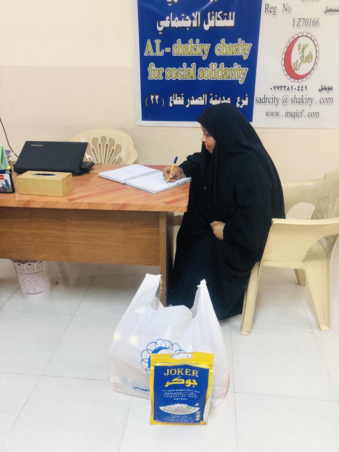 الارملة (احلام .ع .س ) وبناء على رغبة الاسرة تم تجهيزهم بسلة غذائية من محلات الشاكري الخيرية .