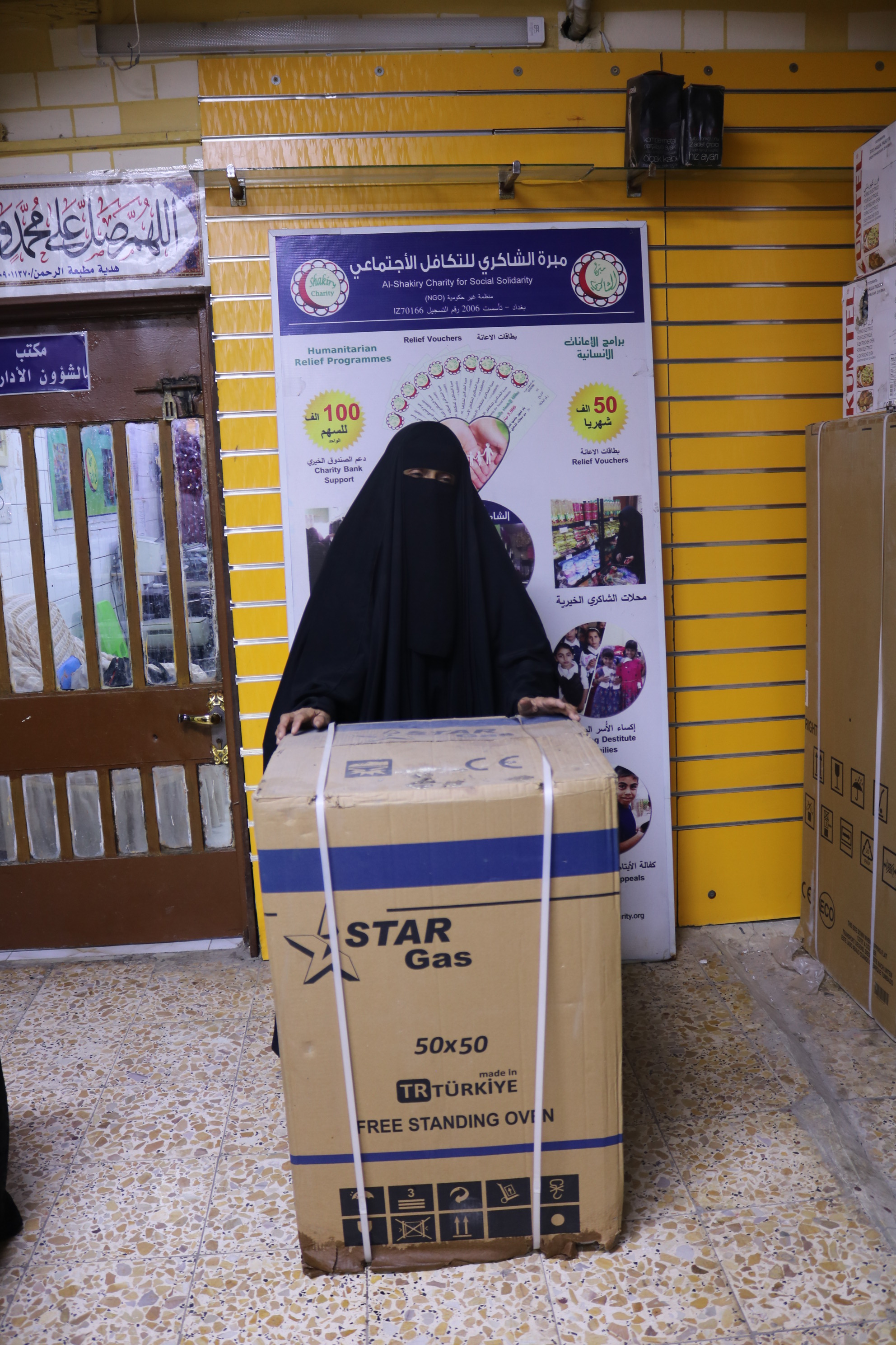 بعد الاستلام ارغبت المتعففه بأختيار ما يناسبها من/ طباخ حيث تم تجهيزها من محلات الشاكري الخيريه.