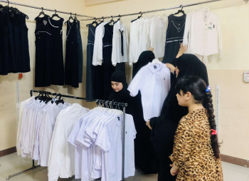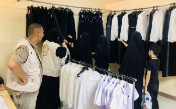 حيث تم تجهيز (25) من التلاميذ والطلبة المسجلين لدى الفرع بالالبسة المدرسية للبنين والبنات التي توفرها محلات الشاكري الخيرية .