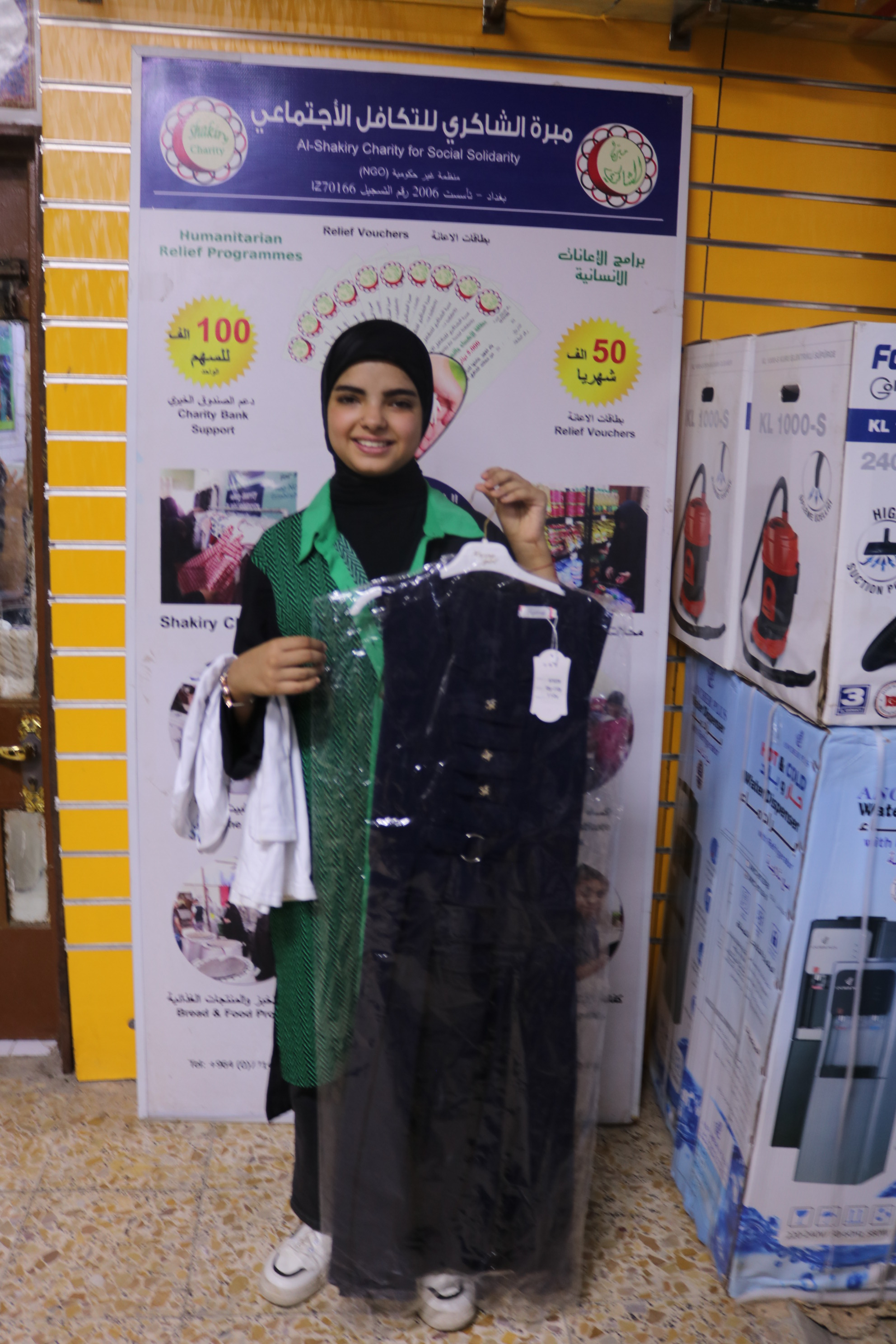 وبعد الاستلام ارغبت المتعففه بالحصول على/ ملابس مدرسية وتم تجهيزها من محلات الشاكري الخيريه