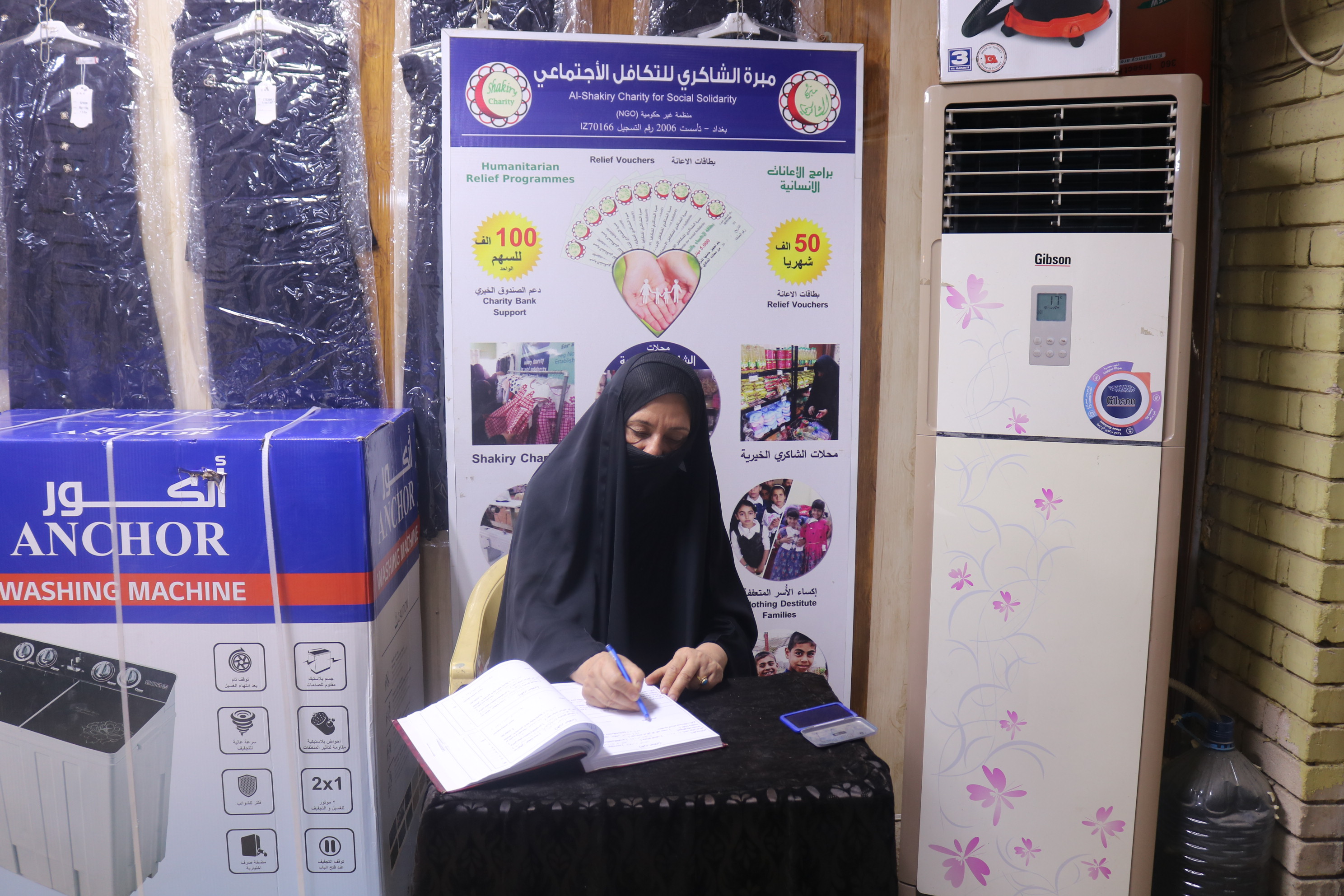 بعد الاستلام ارغبت المتعففه بأختيار ما يناسبها من / غسالة وملابس مدرسية حيث تم تجهيزها من قبل محلات الشاكري الخيريه ويتم التسديد من خلال الكفالة الشهرية .