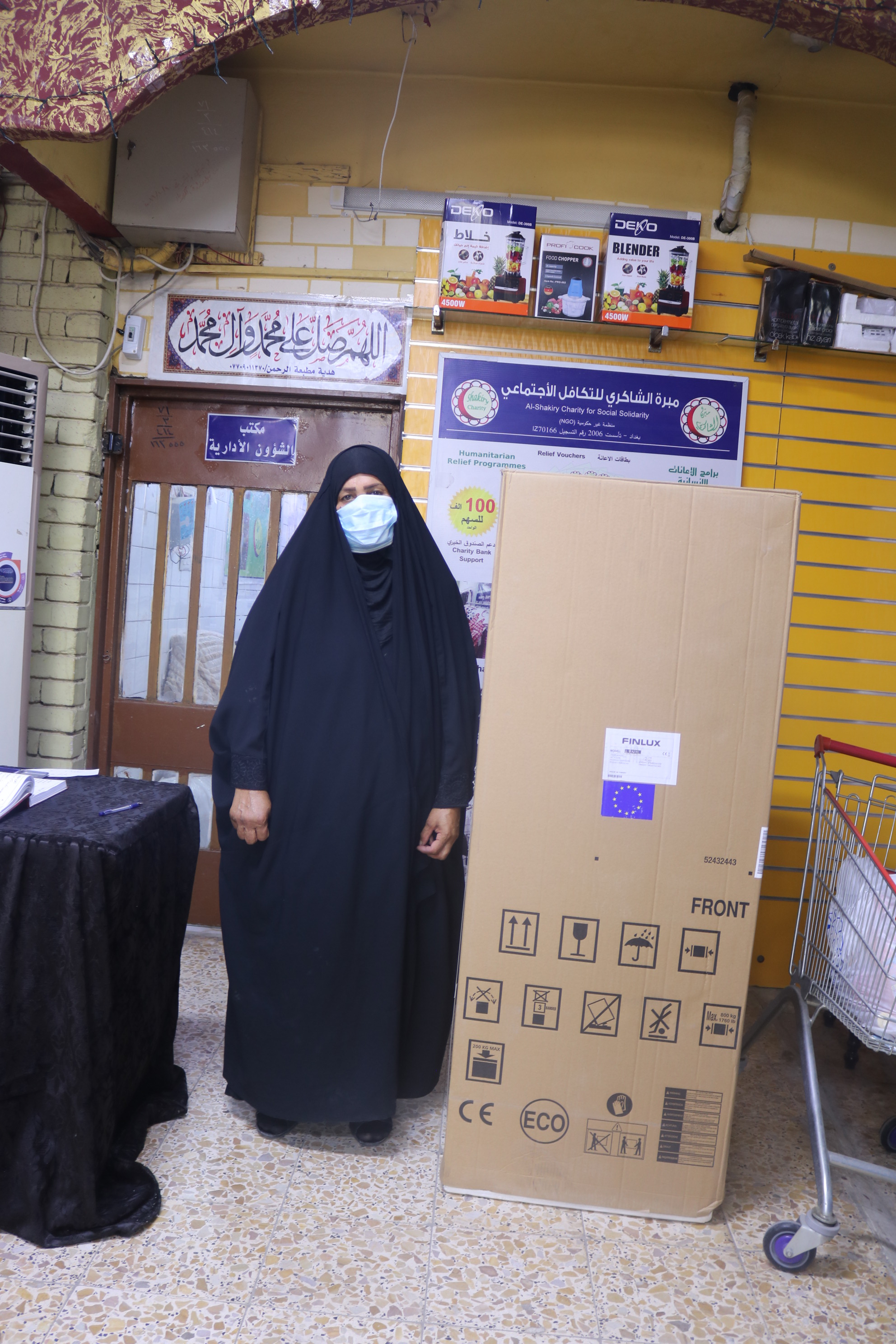 بعد الاستلام ارغبت جدة الايتام بأختيار ما يناسبها/ ثلاجة وحيث تم تجهيزها من محلات الشاكري الخيريه ويتم التسديد من خلال الكفالة الشهرية للايتام .