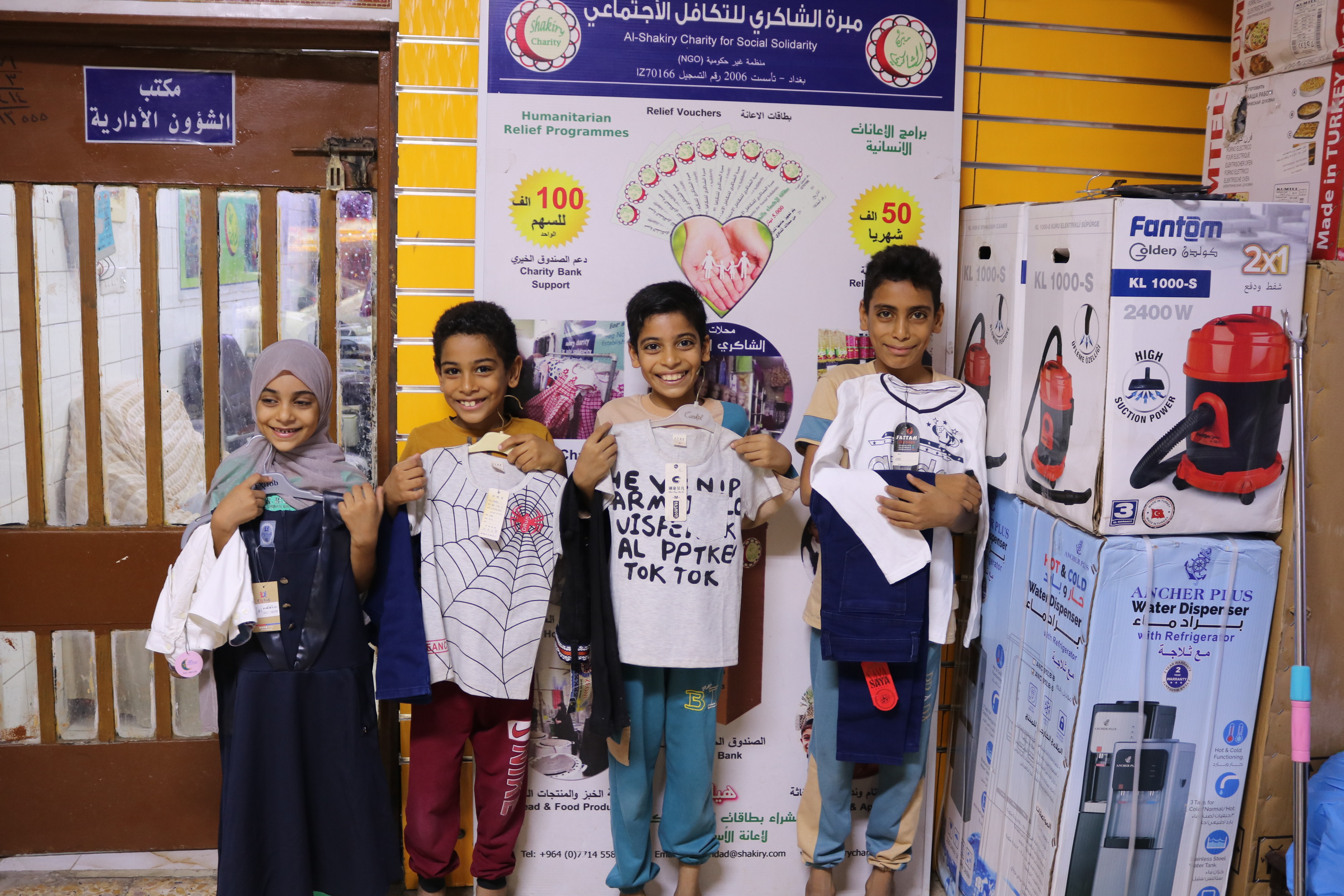بعد التسليم ارغبت الارملة بأختيار الملابس الغذائية وتم تجهيزها من محلات الشاكري الخيريه .