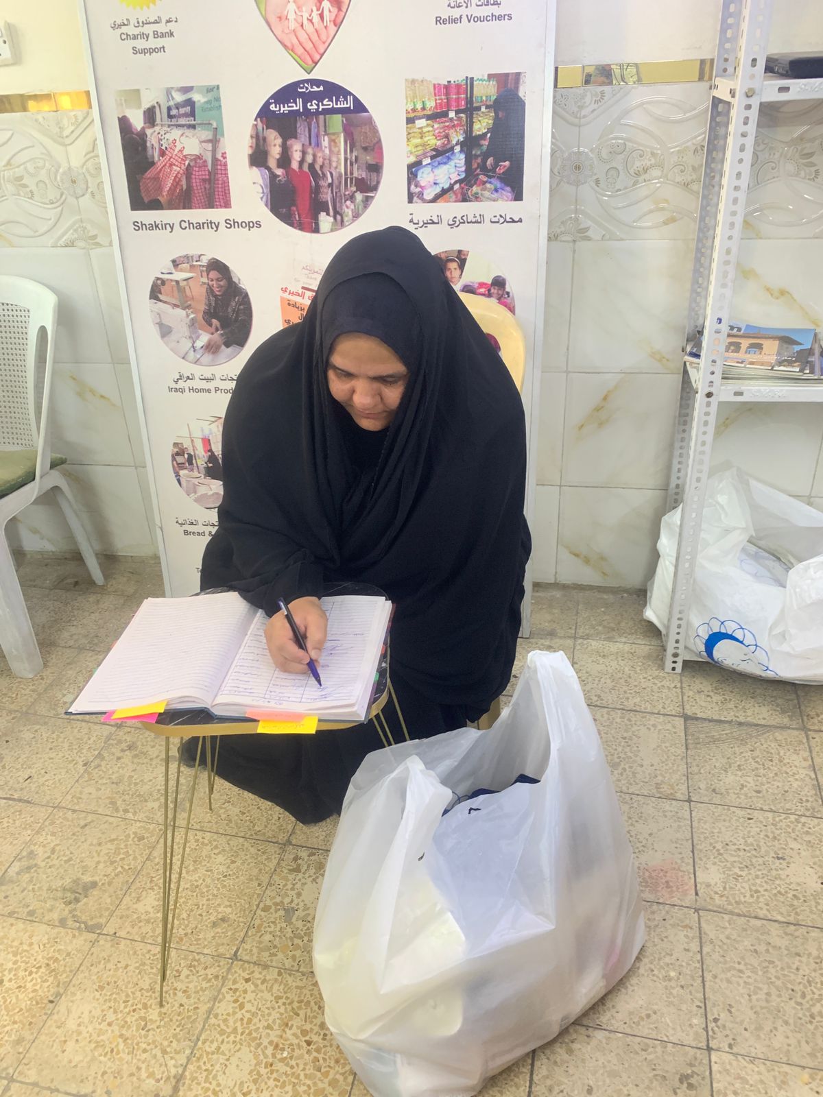 تسليم مساعده ماليه للارمله (رنا ,ي) من المتبرع الحاج /عبد الصاحب الشاكري بقيمة (50) الف دينار عراقي ,وحسب رغبتها تم توفير احتياجات الام الضروريه ( سله غذائية , ملابس مدرسيه ) وذلك عبر محلات الشاكري الخيرية, وقد تم تسليمها اليها وفق نظام بطاقات الغذاء والأكساء حسب برنامج توفير المستلزمات الضروريه للاسر المتعففه .